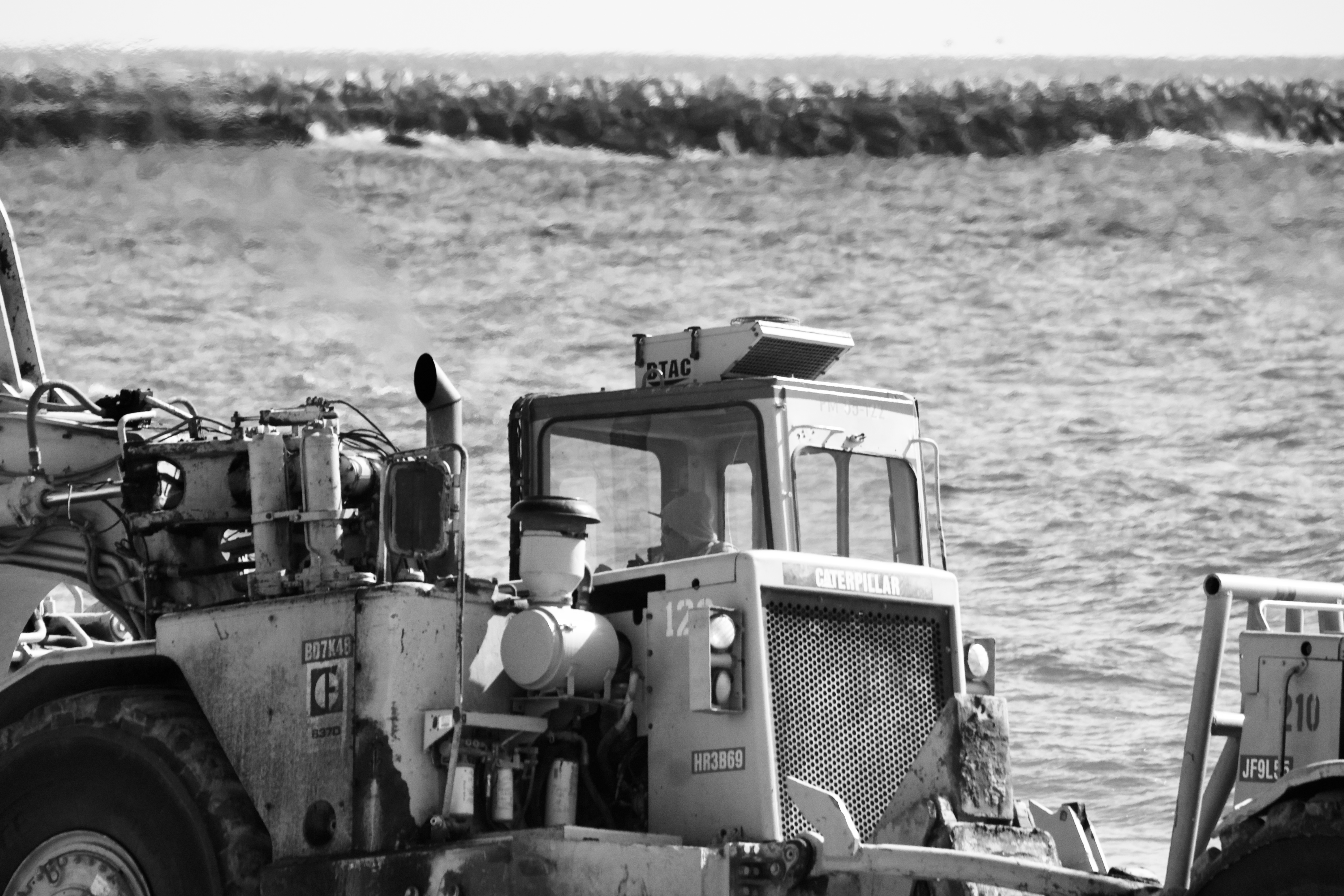 You have an earth mover in your garden? Yikes! You must have a very big garden ;) They are super loud and the diesel fumes are really bad. The beach front homeowners are not complaining though because they are protecting their homes from any winter storms.