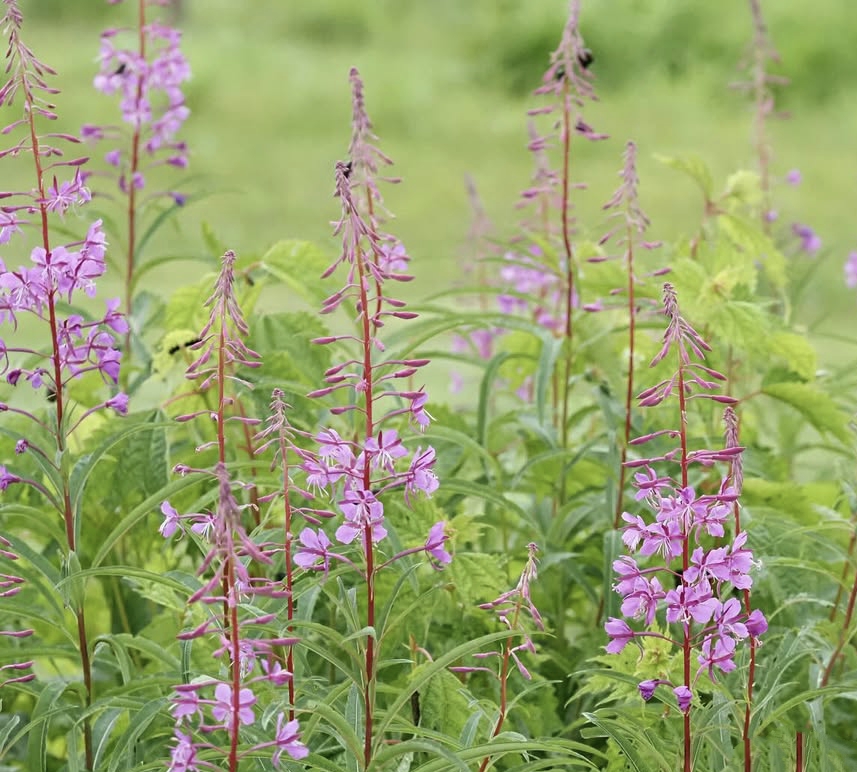 Arranged in an alternate pattern along the stem and its flowers usually have four petals and sepals forming a cross-like shape attracting pollinators such as bees butterflies and hummingbirds fireweed also produces long seed pods which when mature split open to release numerous silky tufted seeds that can travel long distances with the wind ensuring wide dispersal and survival in diverse habitats this resilient plant thrives in poor soils disturbed grounds and post-fire ecosystems thanks to its strong root system and rhizomes which allow it to spread rapidly and form extensive colonies fireweed has a long history of human use among Indigenous peoples who valued it for both food and medicine its young shoots.
