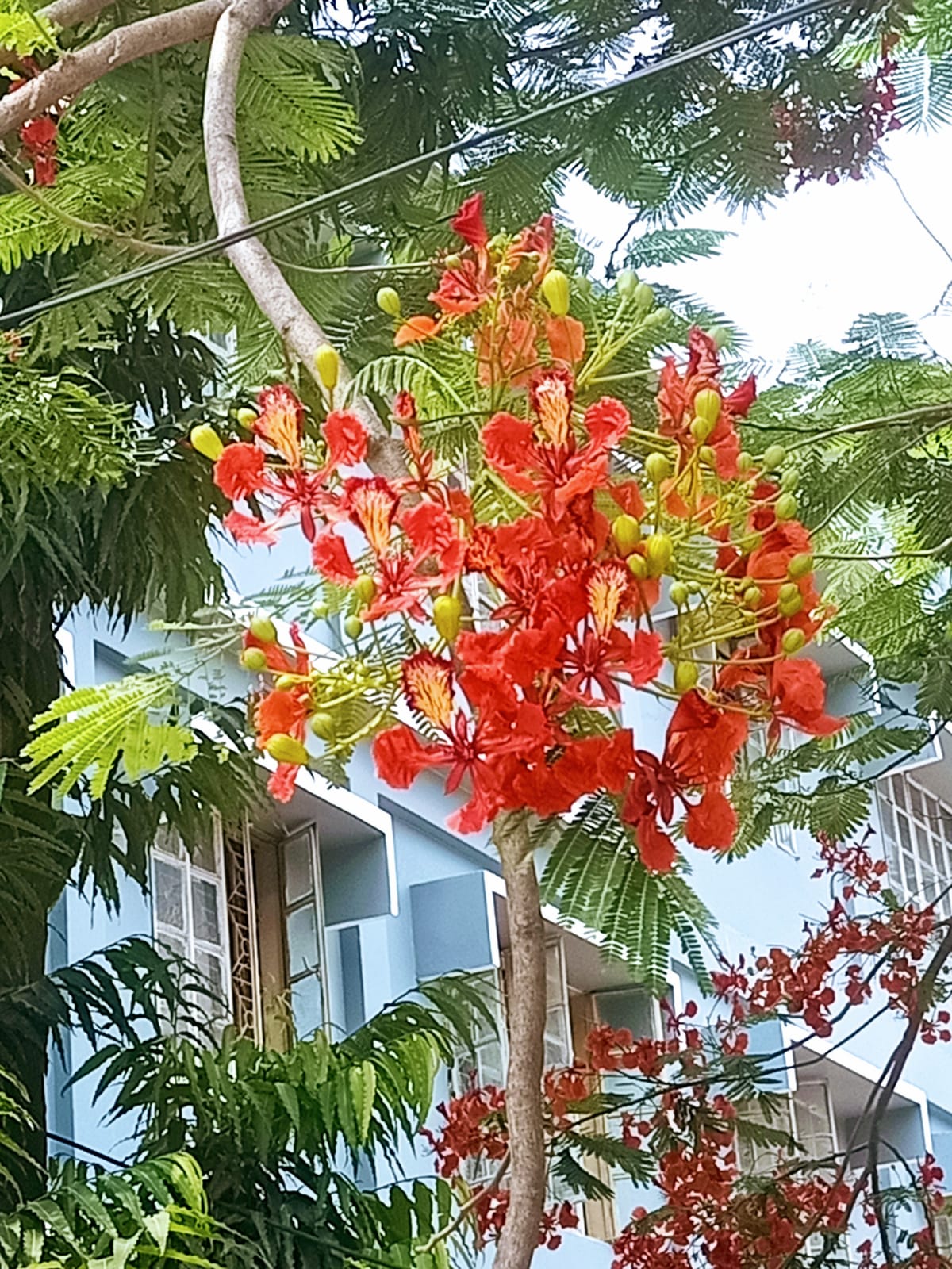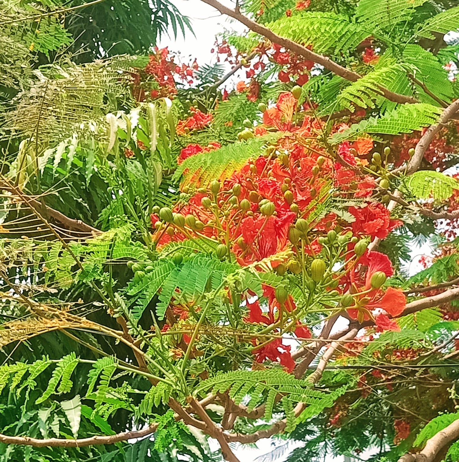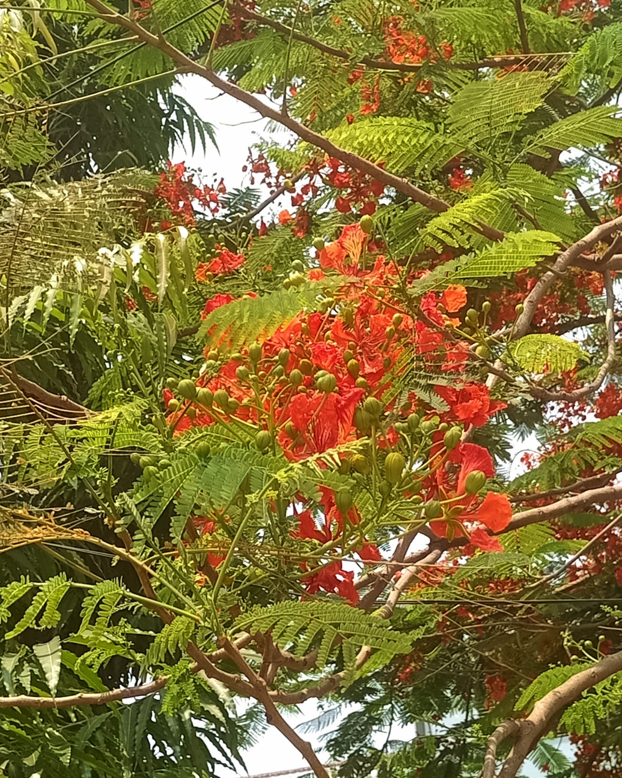 একদম আপু যখন কৃষ্ণচূড়া ফুল গাছে ফুল ফুটে তখন পাতা গুলো খুব কম দেখা যায় কিন্তু ফুল গুলো বেশি দেখা যায়।