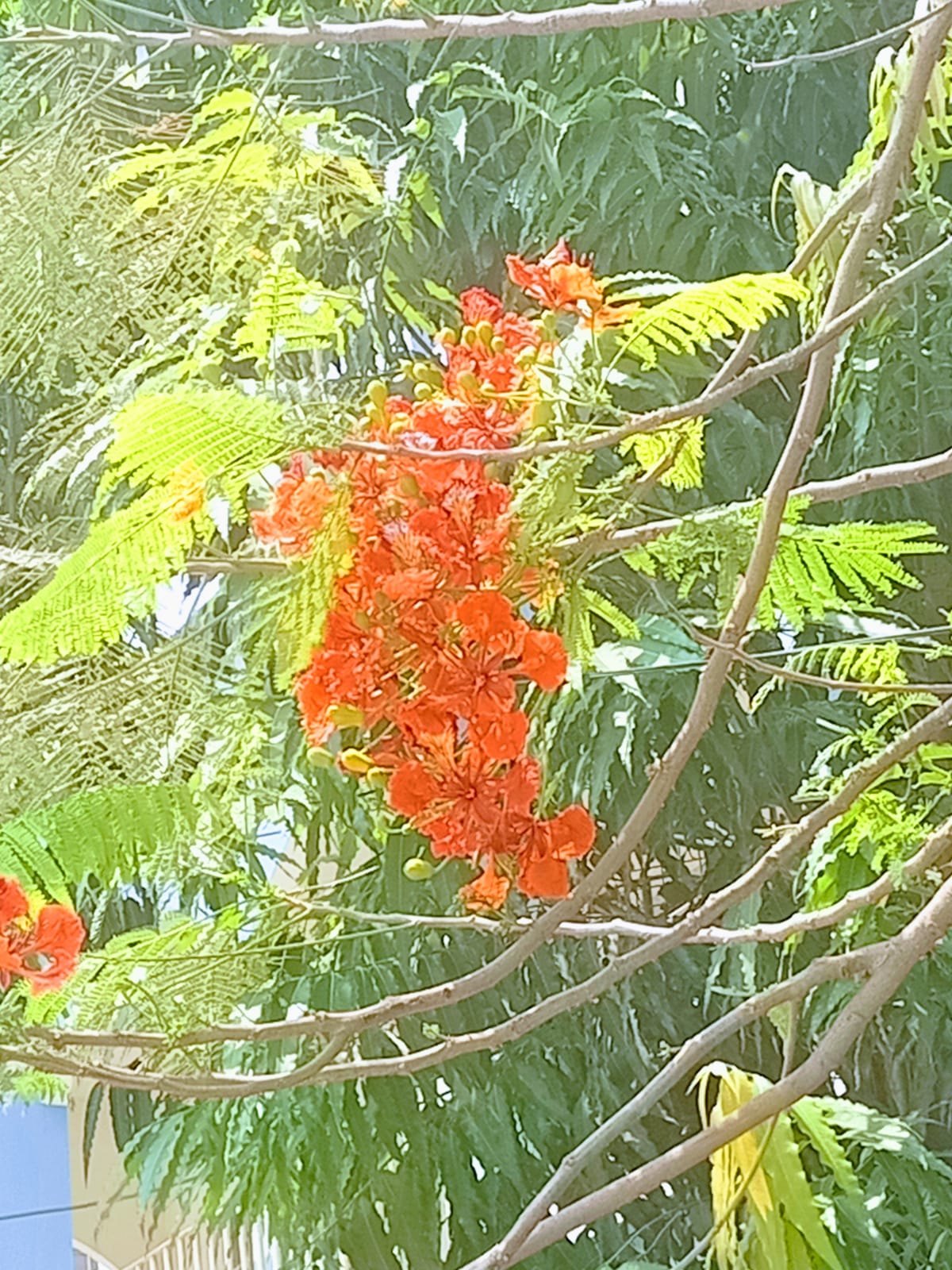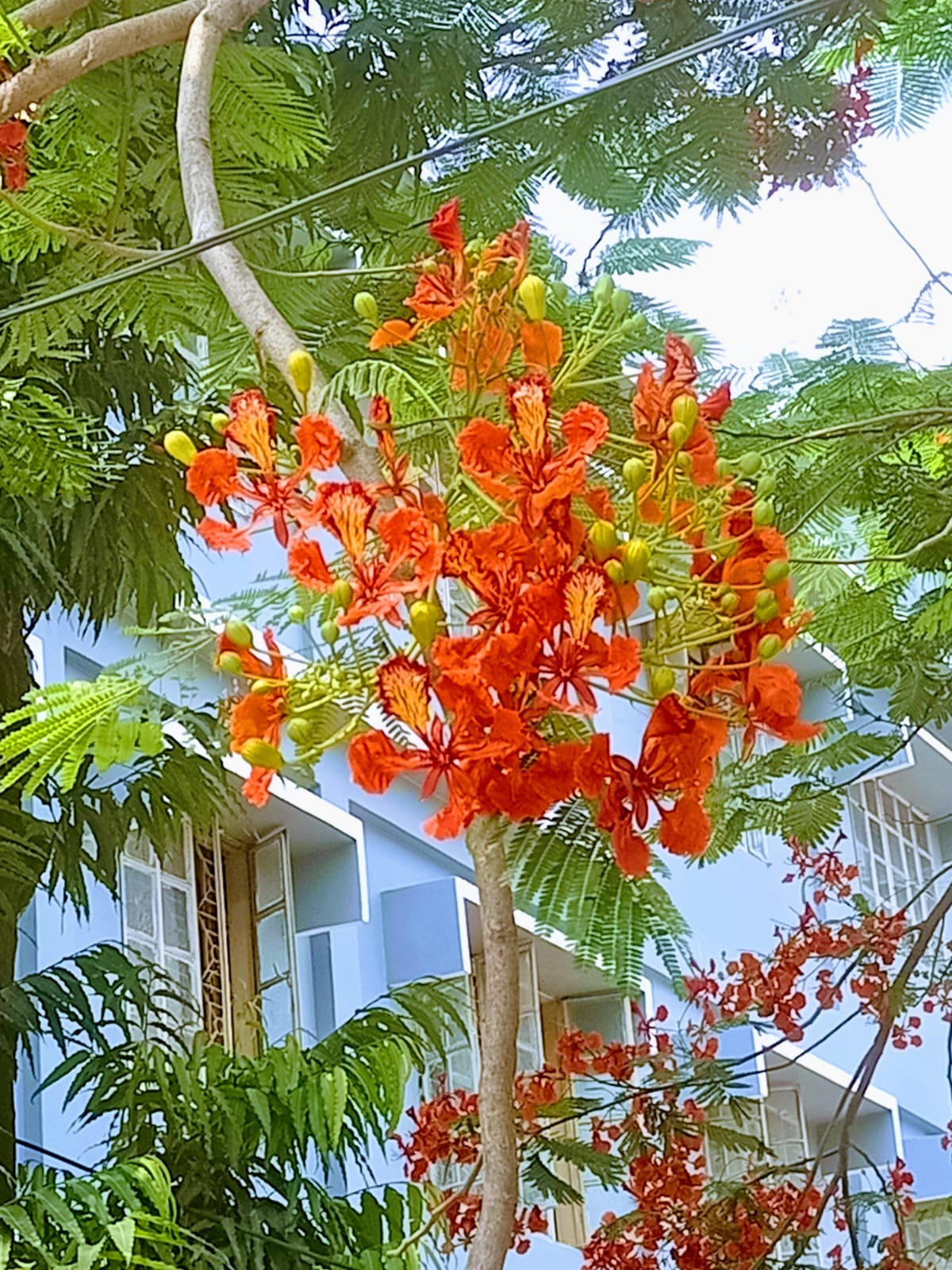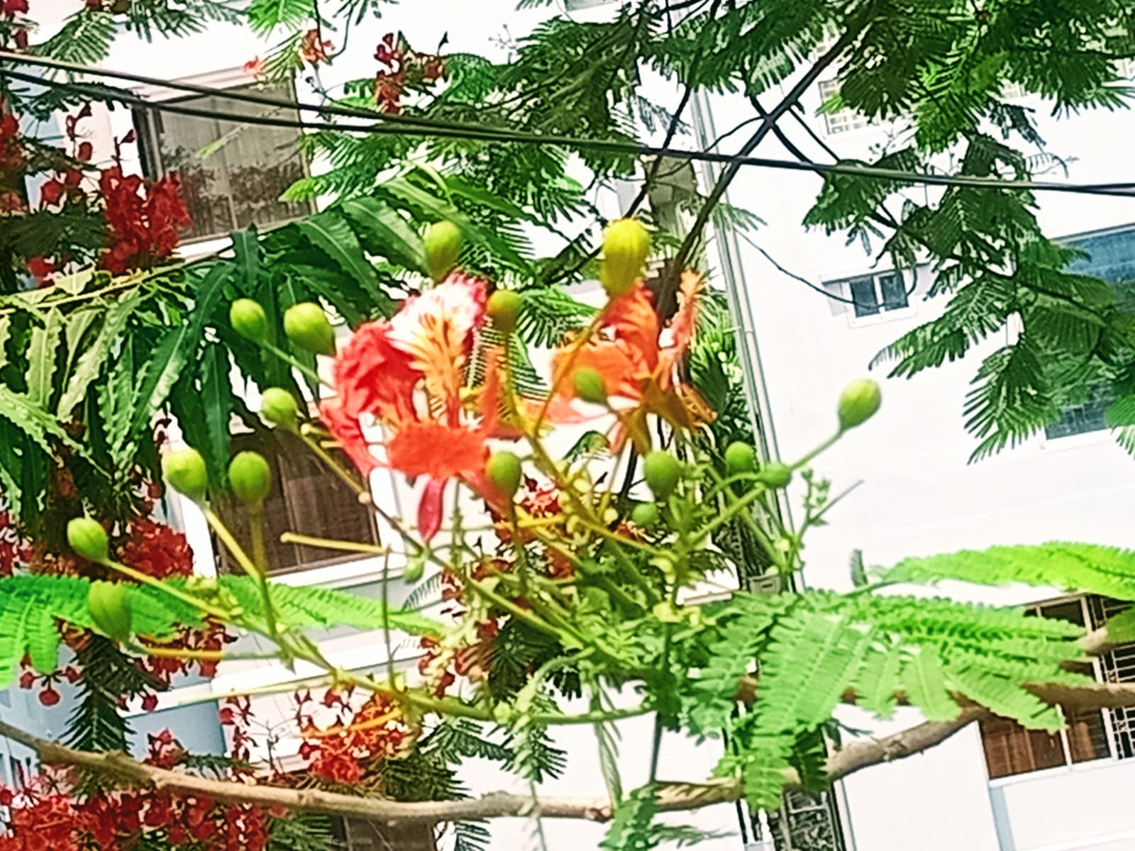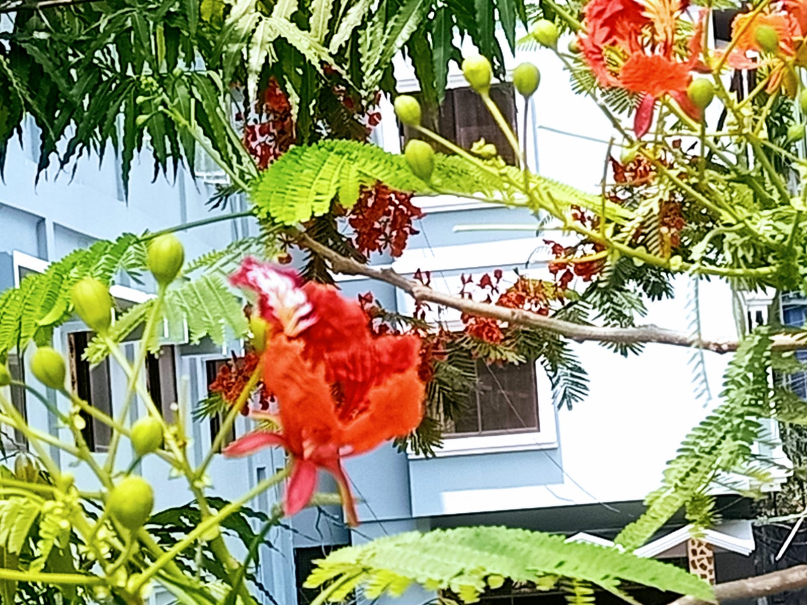 একদম আপু যখন কৃষ্ণচূড়া ফুল গাছে ফুল ফুটে তখন পাতা গুলো খুব কম দেখা যায় কিন্তু ফুল গুলো বেশি দেখা যায়।