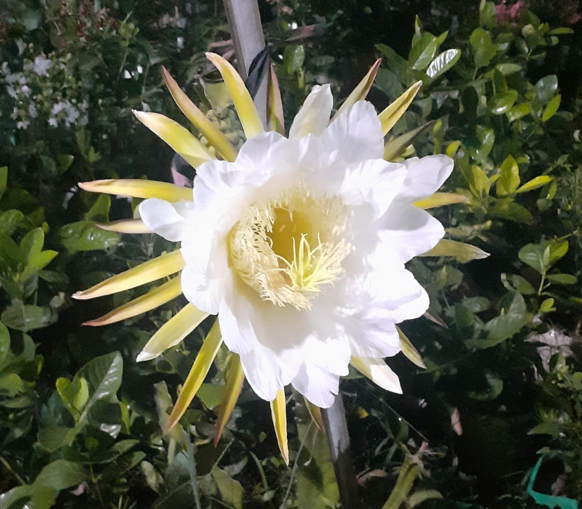 এটি নাইট কুইন ফুলের ফটোগ্রাফি। দেখতে বেশ সুন্দর এই ফুল । সেই সাথে এই ফুলের রয়েছে সুমিষ্ঠ গন্ধ। সাদা রং এর এই ফুলের ভিতরে ঘিয়ে রং এর। নাইটকুইন ক্যাকটাস জাতীয় গাছ। নাইট কুইন ফুল সাধারনত সন্ধ্যা বেলায় ফুটতে শুরু করে আর ভোর হতেই ঝরে যায়। বর্ষা কাল হলো এ ফুল ফোটার উপযুক্ত সময়। আজকাল বাসা বাড়িতে এই ফুলের চাষ বেশ দেখা যায়।