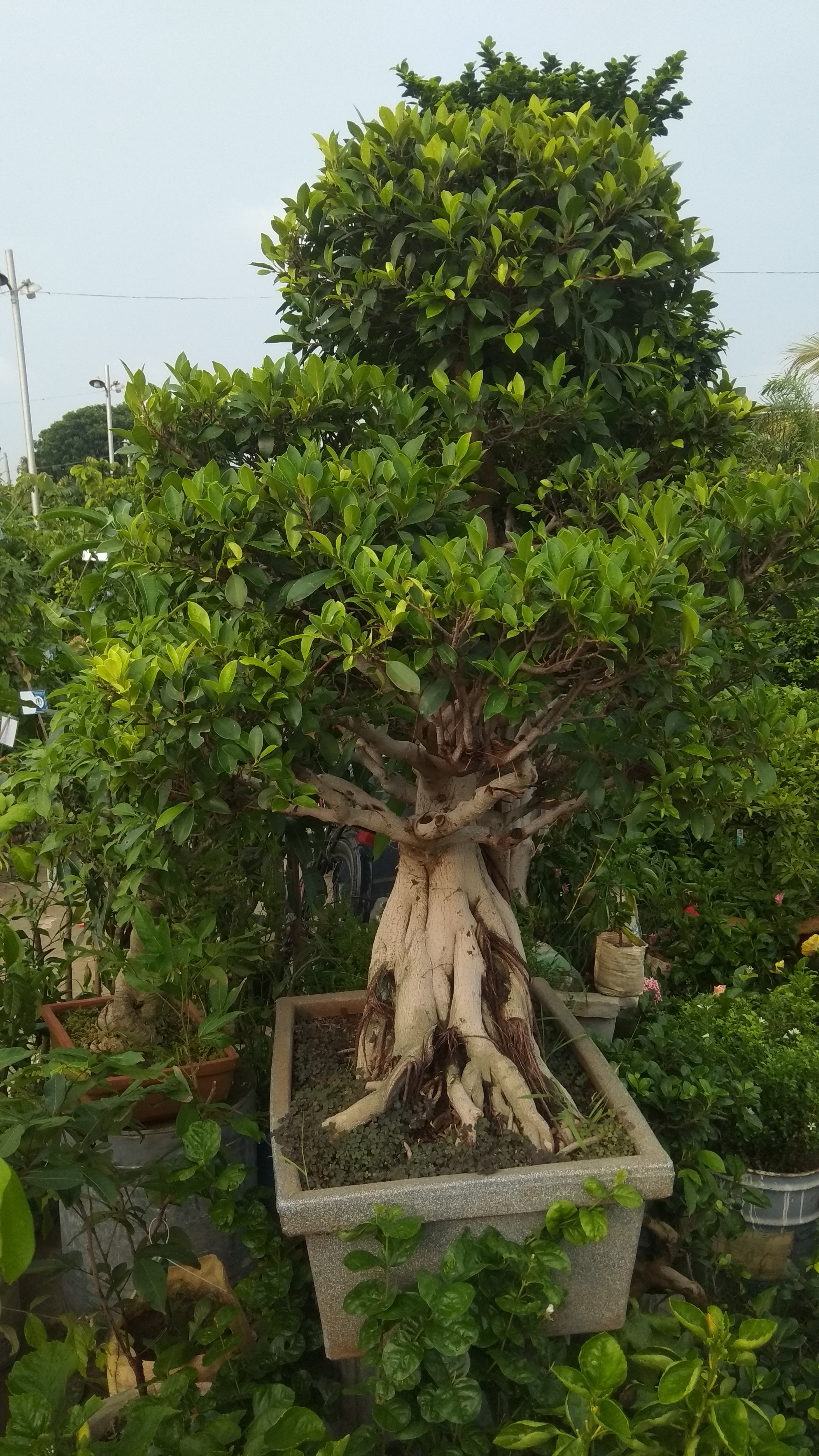 বট বনসাই এর ফটোগ্রাফি এটি। বনসাই একটি শিল্প। শক্ত কান্ড জাতীয় গাছকে ছোট কোন পাত্রে বছরের পর বছর বাঁচিয়ে রাখার শিল্পকে বলা হয় বনসাই। সহজ আর্থ হলো বামুন গাছ।নার্সারীর মালিক জানালো এই গাছের বয়স প্রায় ১৫ বছর। বনসাই গাছ ঘর সাজানোর জন্য আজকেল বেশ দেখা যায়। এক একটি বনসাই গাছ ১-১৫ লাখ টাকা পর্যন্ত বিক্রি করা হয়। অনেকেই আজকাল বনসাই গাছ তৈরি ও বিক্রিকে পেশা হিসাবে বেছে নিয়েছেন।