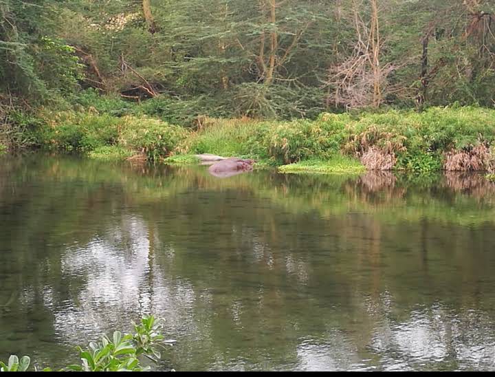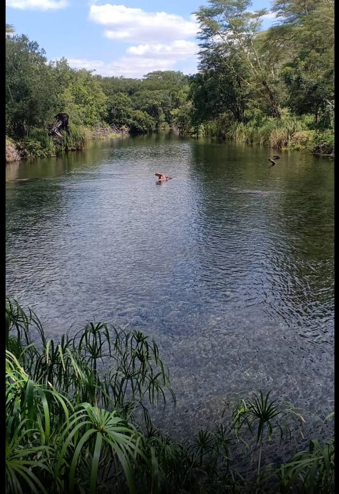 The stream is blocked by a solidified lava flow. The spring acts as residence for hippos and nile crocodiles