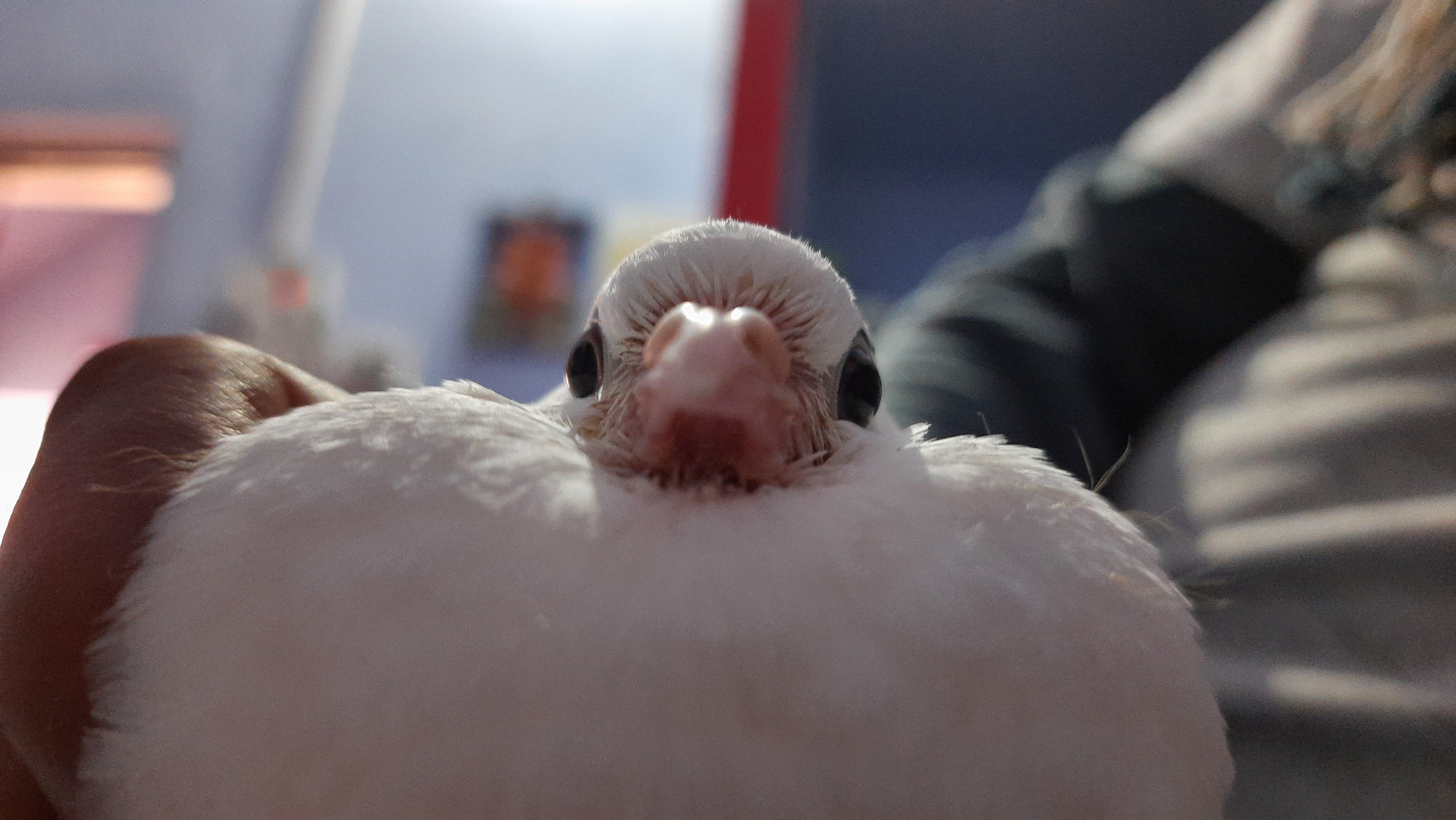 Today I have a unique guest knocking at the doorstep. It was a small cute beautiful Pigeon baby, which was fallen from her nest on her first flight.