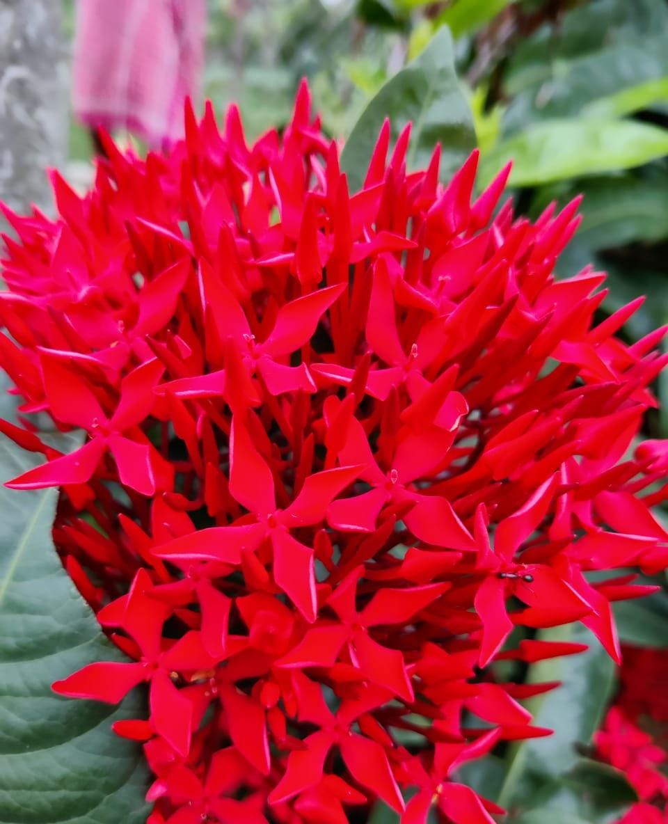 রঙ্গন ঘন চিরসবুজ গুল্ম জাতীয় উদ্ভিদ যা তিন থেকে ছয় মিটার পর্যন্ত উঁচু হয়। রঙ্গনের মঞ্জুরিপত্র বিশিষ্ট গাঢ় লালবর্ণের পুষ্প-মঞ্জুরিতে থাকে অসংখ্য পুষ্পের সমাবেশ। পাতার বিন্যাস ঘন। পাতা সরল ও প্রতিমুখ বা আবর্ত, কিনারা অখ, উপপত্র দুটি বৃত্তের মাঝে অবস্থিত। ফুল নলাকৃতি, তারার মতো চারটি পাপড়ির বিন্যাস।