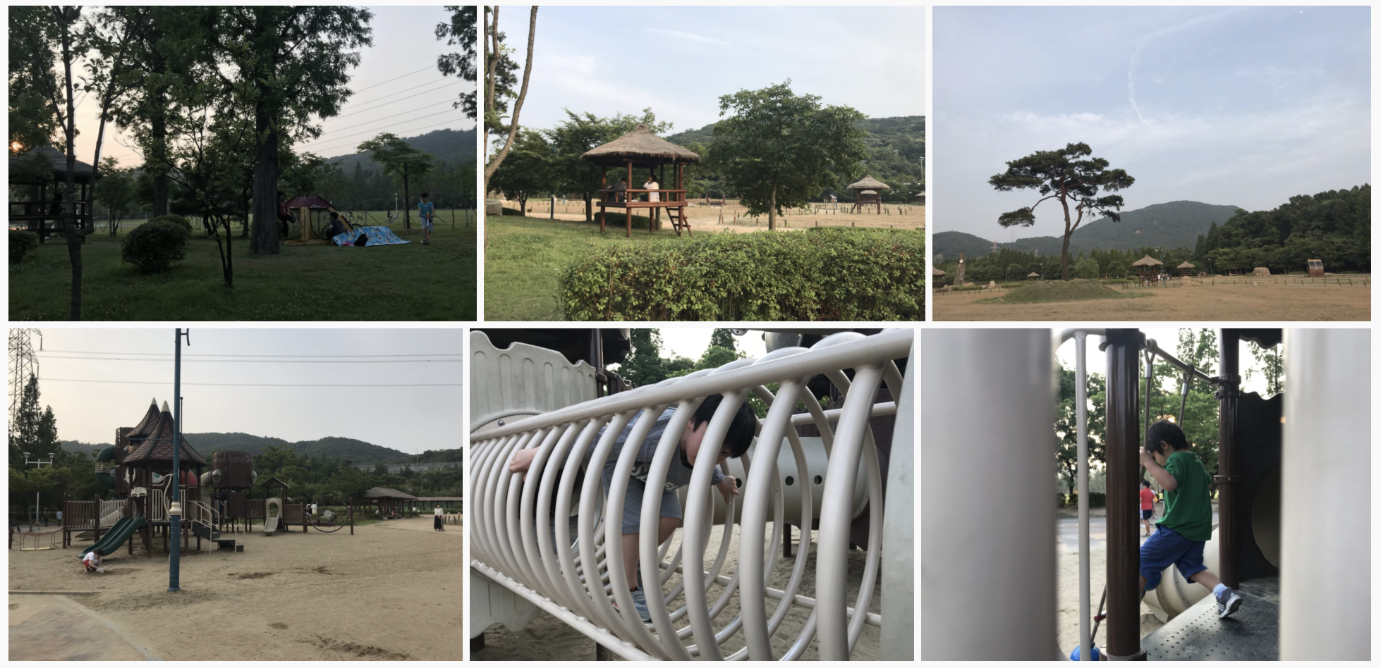 주변 벤치에 휴대폰을 보며 쉬는 어른들이 많이 보이네요.