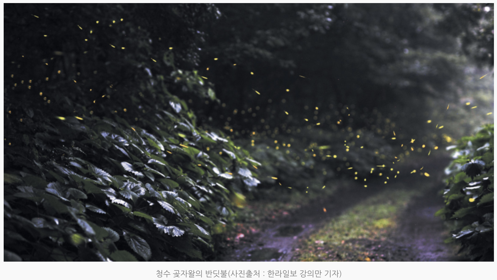 반딧불이는 오염이 없는 청정자연에서 서식하기 때문에 반딧불이 서식지는