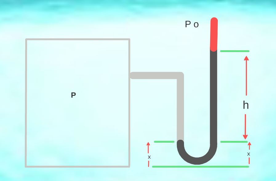 We have the following scheme of a manometer of liquids, if the atmospheric pressure is po, the specific gravity of the liquid P and the difference between two branches of the pipe h, it is fulfilled that the pressure of the gas or steam shut up in the cylinder is p = po P.h. (Image prepared for @coolxxx)