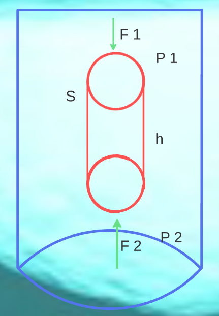 If the pressure in a point A of a fluid mass, at rest increases in quantity p, deacuerdo with the general equation of the hydrostatics, it will be had that the pressure in a point B, placed to the depth h, increases the same quantity p, this result is known by the name of beginning of Pascal. (image prepared for @coolxxx)