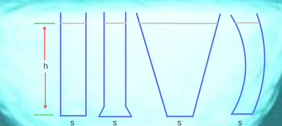 The force that receptacles exercise the liquid on the fund of these cuatros, depends neither on the form of the receptacle nor of his capacity, to depend exclusively goes. of the area in S of the fund, of the height h between the fund and the free level of the liquid and of the specific gravity of this one. (Image prepared for @coolxxx)