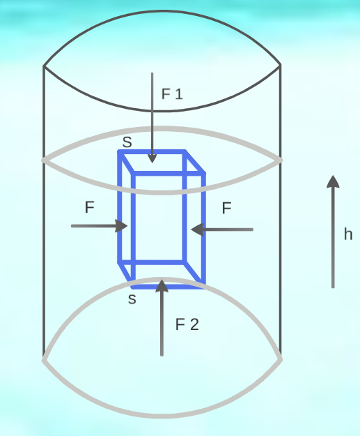 If p1 and p2, they are the pressures in two points of a fluid mass at rest, of specific gravity in P and the distance vertica, that it separates to the above mentioned points is h, it is fulfilled that p2-p1 = P.h. (Image prepared for @coolxxx)