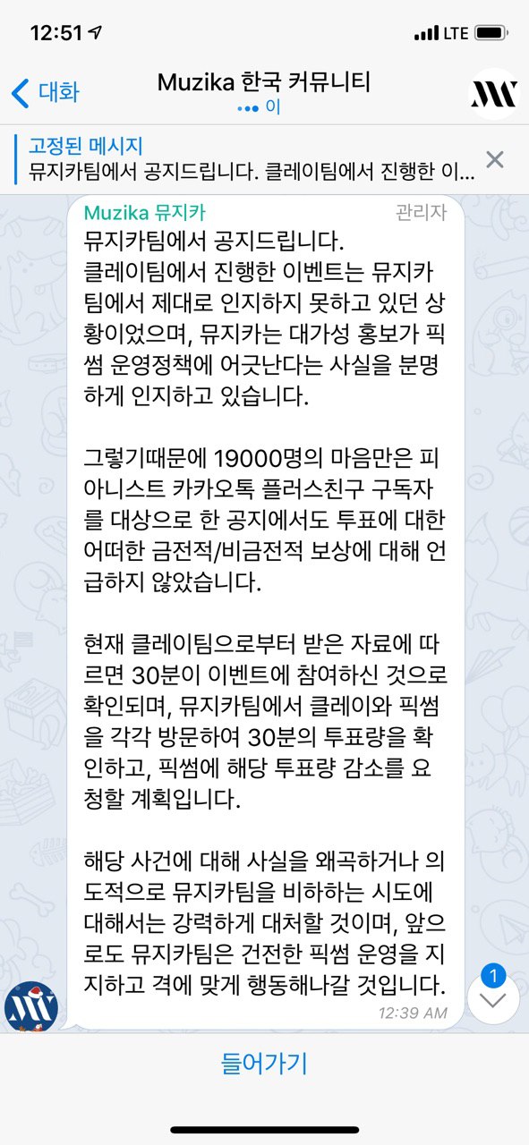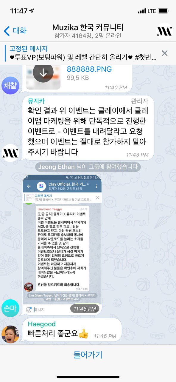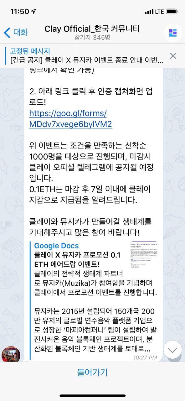 클레이 지갑과 마케팅을 통해 5표 이상한 사용자로부터 0.1ETH를 클레이지갑으로 전송하는 이벤트가 나오게 되었다. 순식간에 뮤지카의 투표수는 올라갔다.