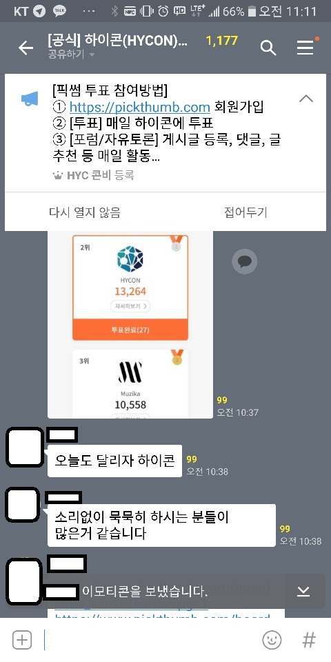 그리고 하이콘 공식 채팅방은 끊임없이 콘텐츠를 작성하고, 추천 눌러줄 것을 요청하는 게시물이 올라오고 있다. 서로 글을 쓰고 추천해 새 투표권을 획득하기 위함이다. 이에 따른 픽썸 게시판은 커뮤니티의 기능이 없는 단순하고 질이 떨어지는 게시글들이 올라온다. 실제로 각 게시글의 조회수가 100이 넘는 게시글은 오로지 공지사항 뿐이다.