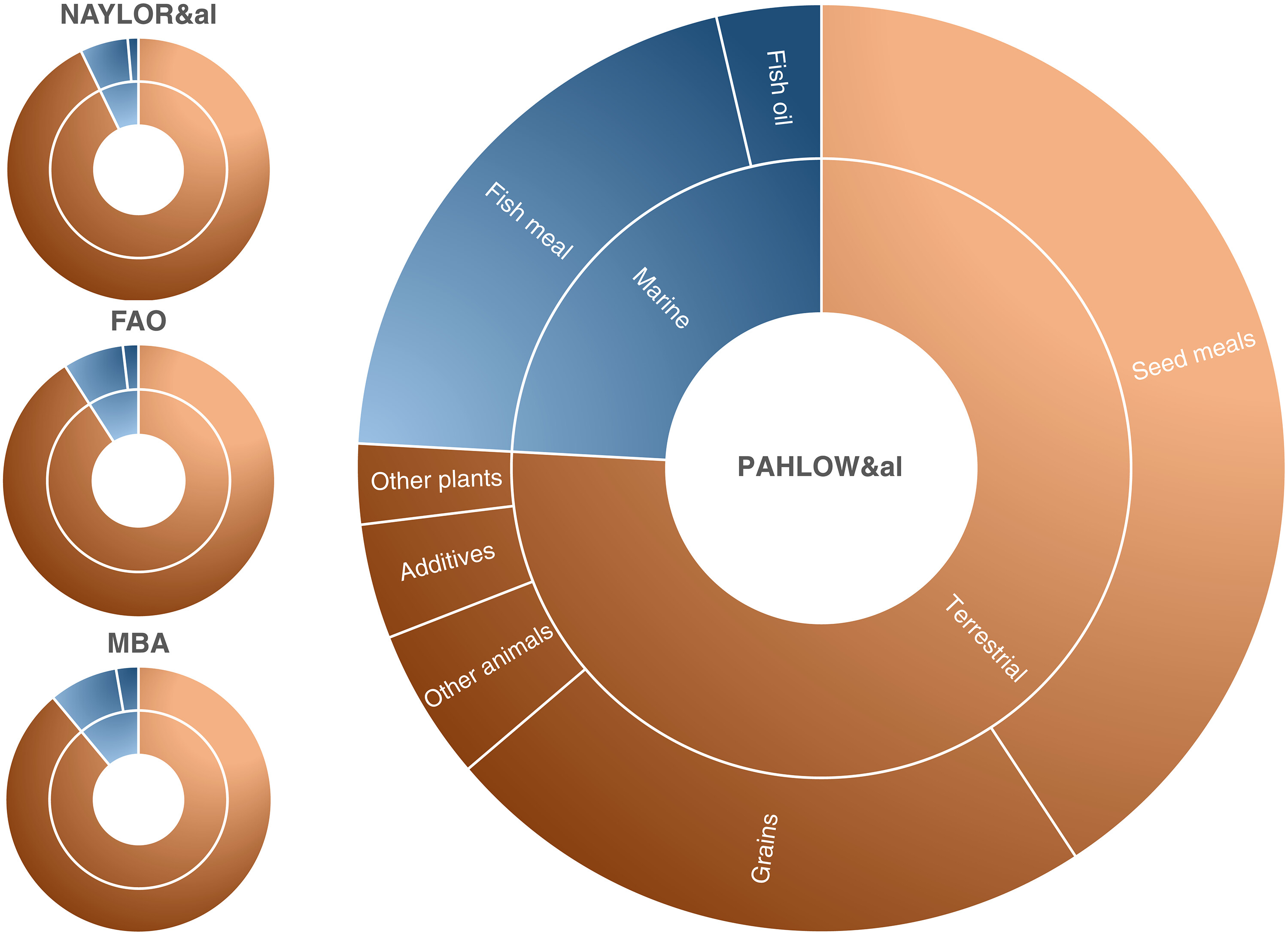 “他们证明了水产养殖中鱼粉和鱼油的使用情况比许多行业分析师预估的更为复杂。”瑞典哥德堡大学的Stefano Longo说,“这类饲料的实际投入量可能被低估,甚至大幅低估。
