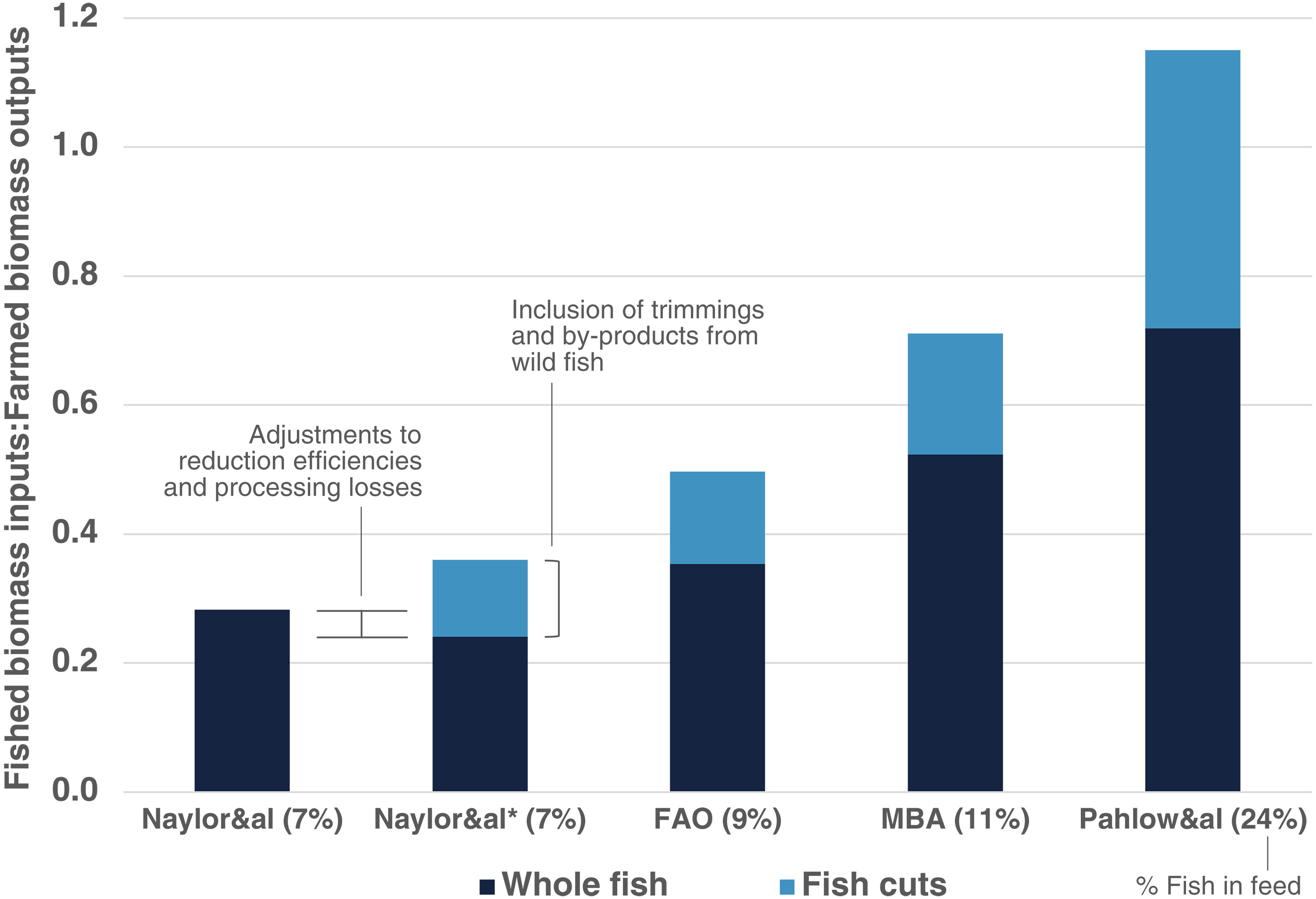 即便不考虑这些额外死亡,Haye指出,养殖鱼类所导致的野生鱼类死亡数量比之前的估计要高这一结论依然成立。他还表示,如果计算这些因素,那么总量还要增加20%到50%。