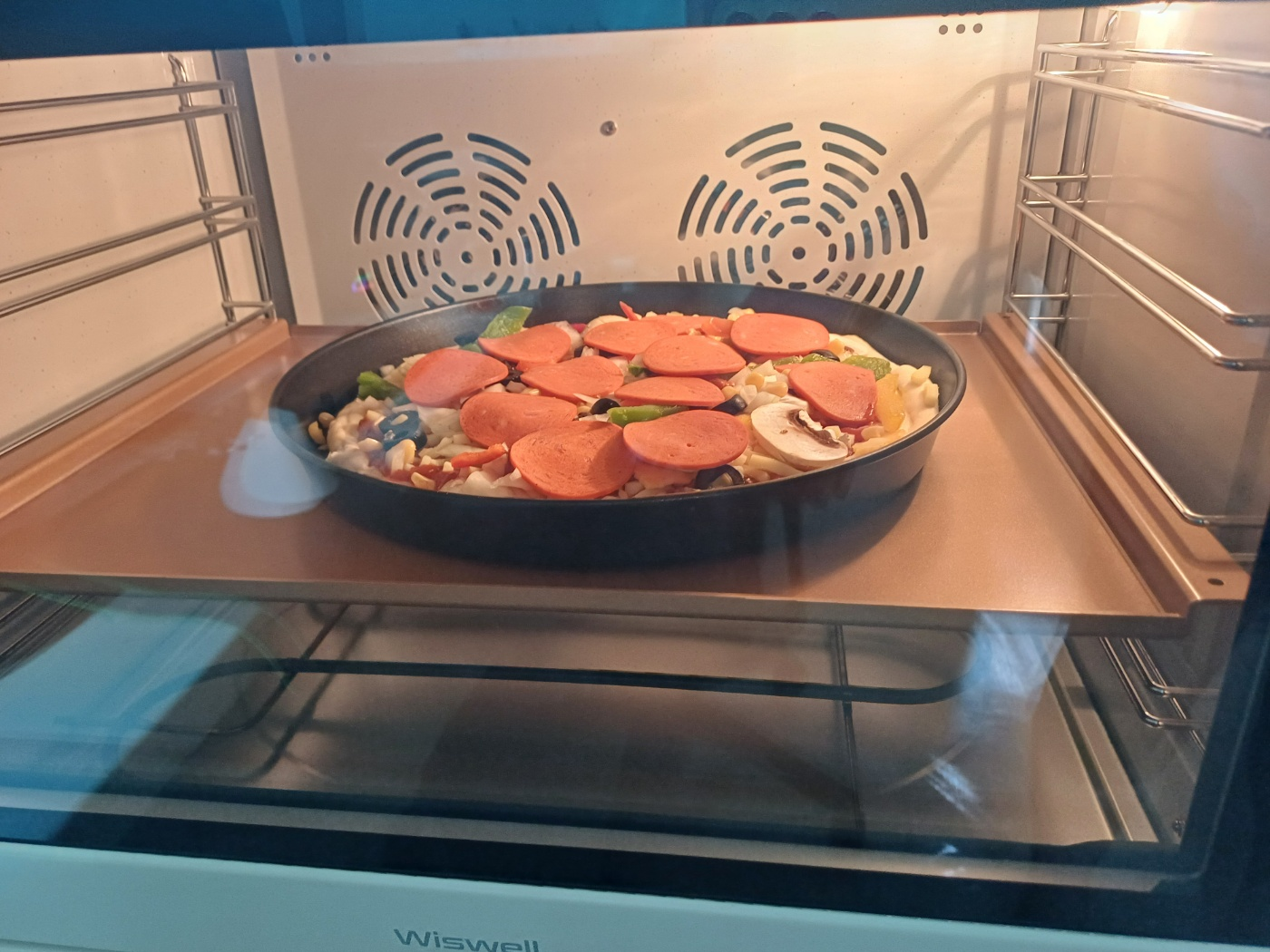 첫날에는 잘 되려나 싶은 마음으로 피자를 구웠습니다.