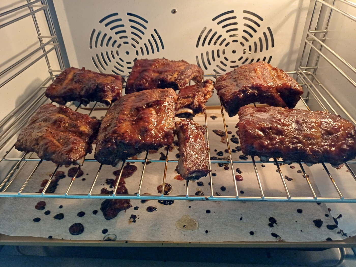 소스가 발라진 고기를 180도 오븐에 넣고 10분간 돌려 줍니다. 그 후 10분이 지나면 다시 한번 소스를 발라줍니다.