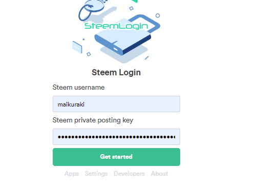 아이디 및 포스팅키 입력 후 겟 스타트