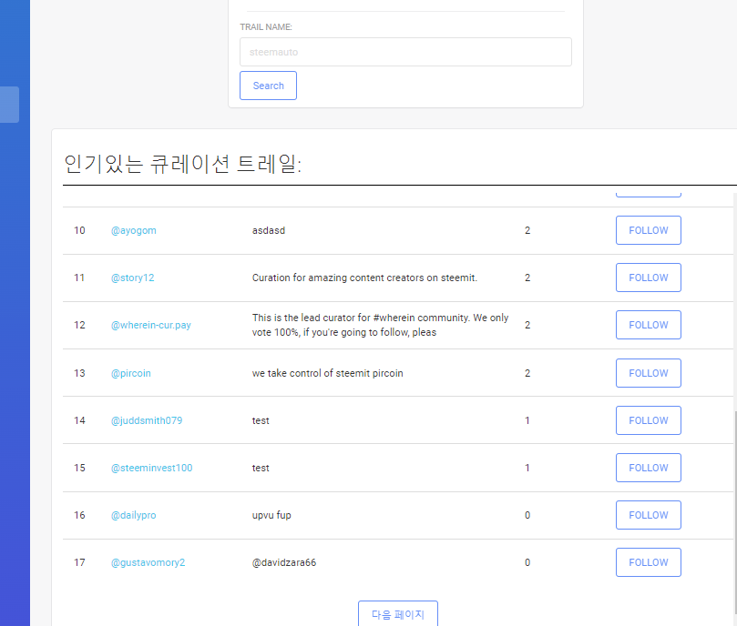 왼쪽 업 큐레이션 트레일 클릭
