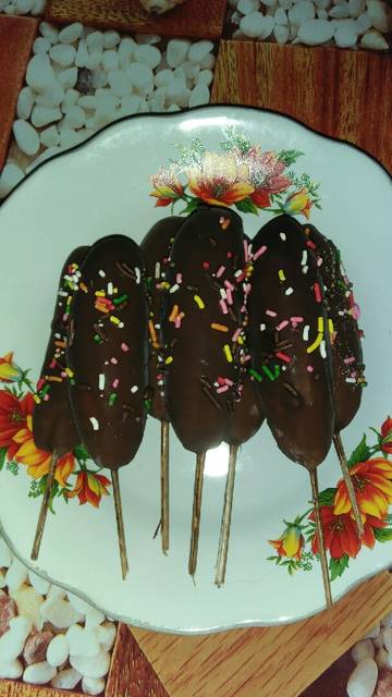 Caranya dengan mengupas kulit pisang terlebih dahulu, memberikan tangkai pada pisang agar lebih merata ketika mencampur coklat dan seresnya terlebih dahulu pisang yang sudah diberi tangkai di masukkan ke kulkas, setelah beku baru di taburi dengan coklat yang sudah dilarutkan beserta gula kemudian di tabur seres..