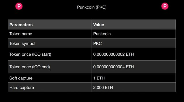 E seguirà i parametri chiave ICO di Punkcoin