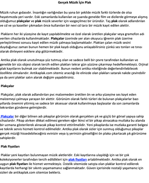 Plaklar yeni kayıtları bulunmayan müzik aletleridir. Eski kayıtlarına ulaşıldığı için ve bir çok koleksiyonerler tarafından tercih edildikleri için plak fiyatları artabilmektedir. Antika plak olarak en uygun plak fiyatları ile hizmet vermekteyiz. Üstelik sitemizde satışta olan plaklar kontrol edilerek kayıtlarda herhangi bir sıkıntı yaşamamanız sağlanmaktadır. Güven içerisinde nostalji yaşamanız için sizleri de antikaplak.com sitemize bekleriz.