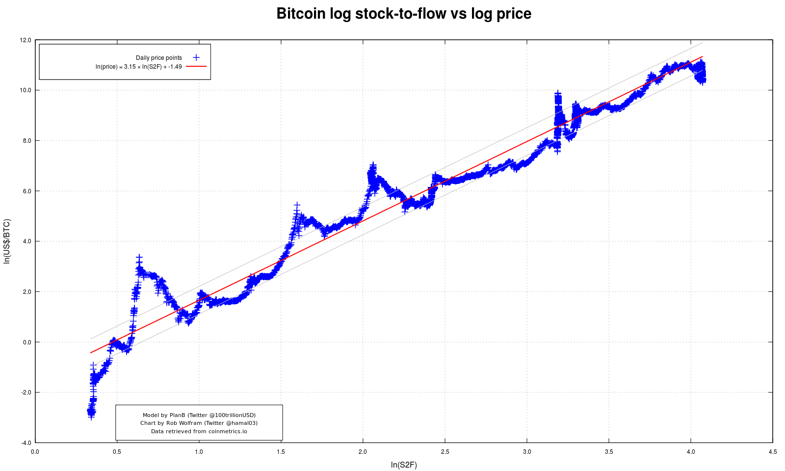 btc pridectromikk (29)in #planb • 4 years ago Current date: 2021-12-20 Current price: $46954.76 Predicted price: $80706.26 Predicted × 1SE: $139845.86 Predicted ÷ 1SE: $46576.28 Predicted × 2SE: $279691.72 Predicted ÷ 2SE: $23288.14