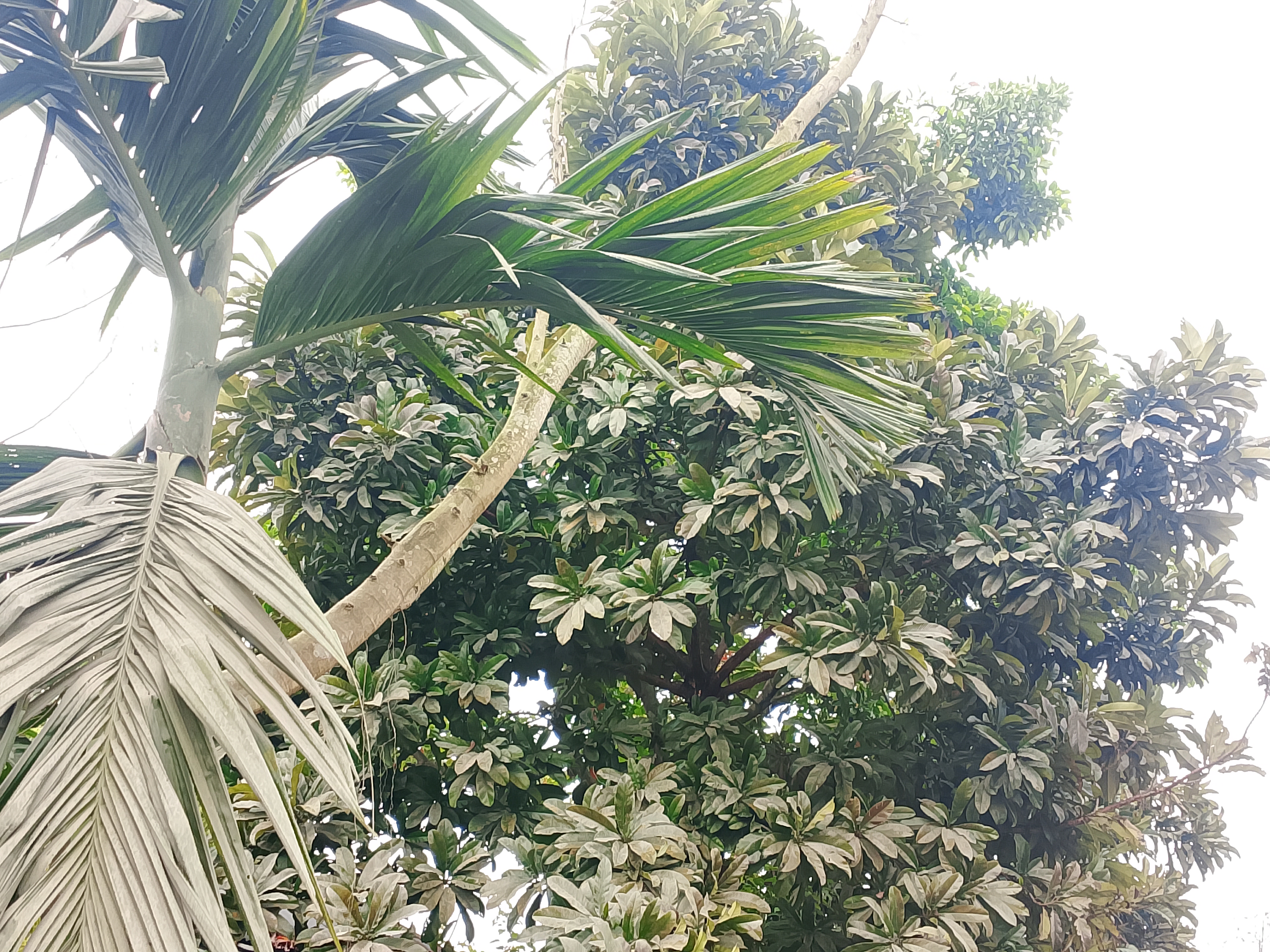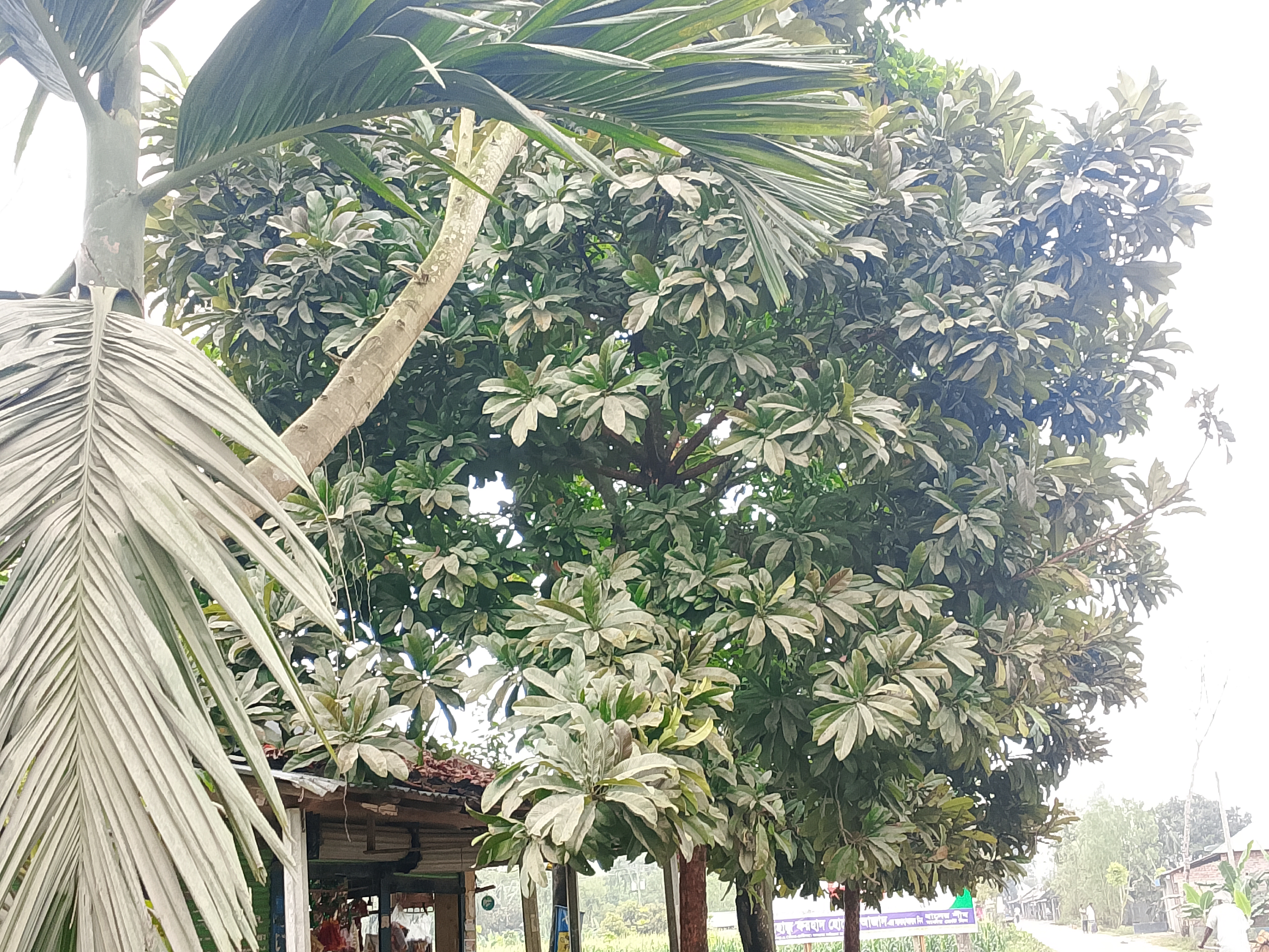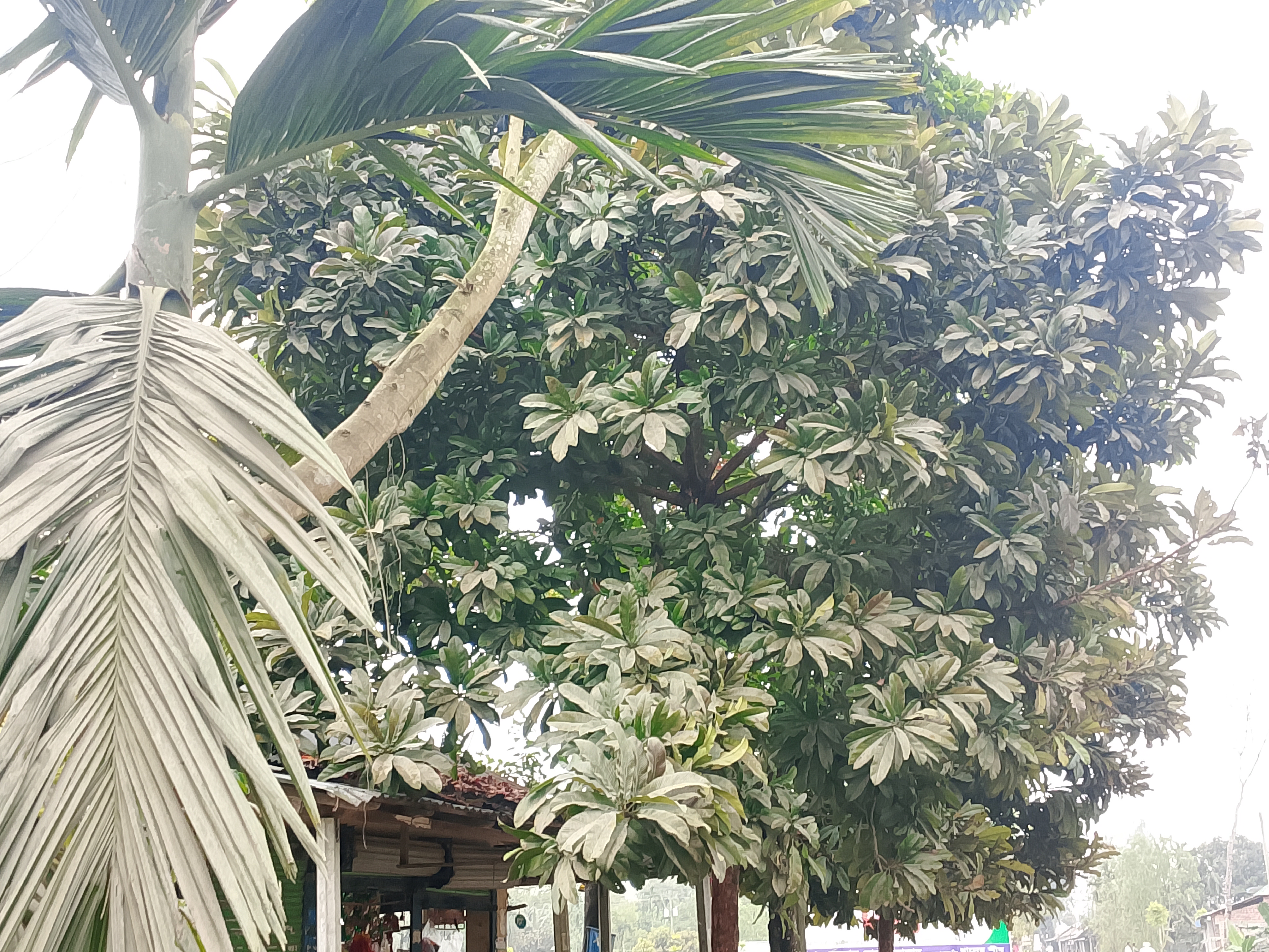 This is an Alstonia tree. Its leaves are large and look very beautiful. The tree itself is quite big, and the leaves look very nice. Seeing these leaves today felt very good. At night, I was standing under the tree.