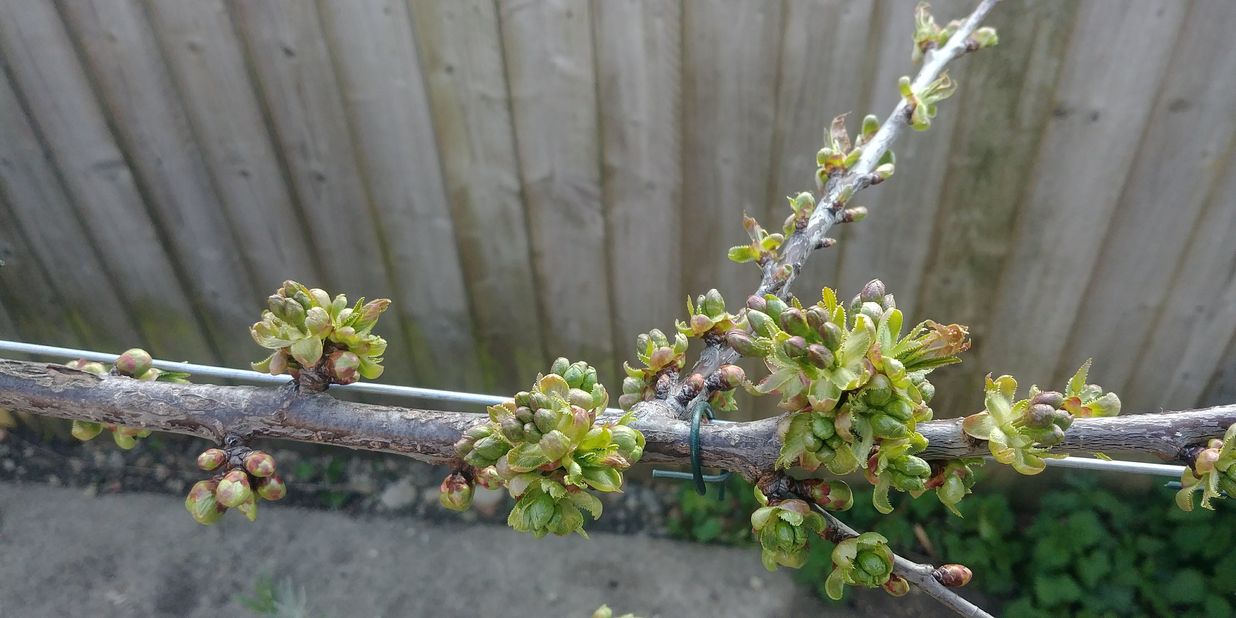 The cherry isn't quite there yet, but I think it will bloom in the next week or so.