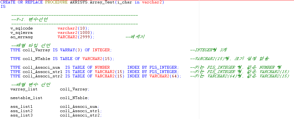 [ORACLE] PL/SQL 프로시저 배열