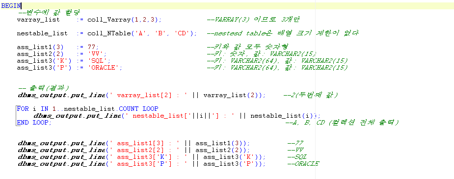 먼저, 배열로 테이블 내역을 입력 받아 루프를 하기 위해 PL/SQL 배열을 공부해보았다.