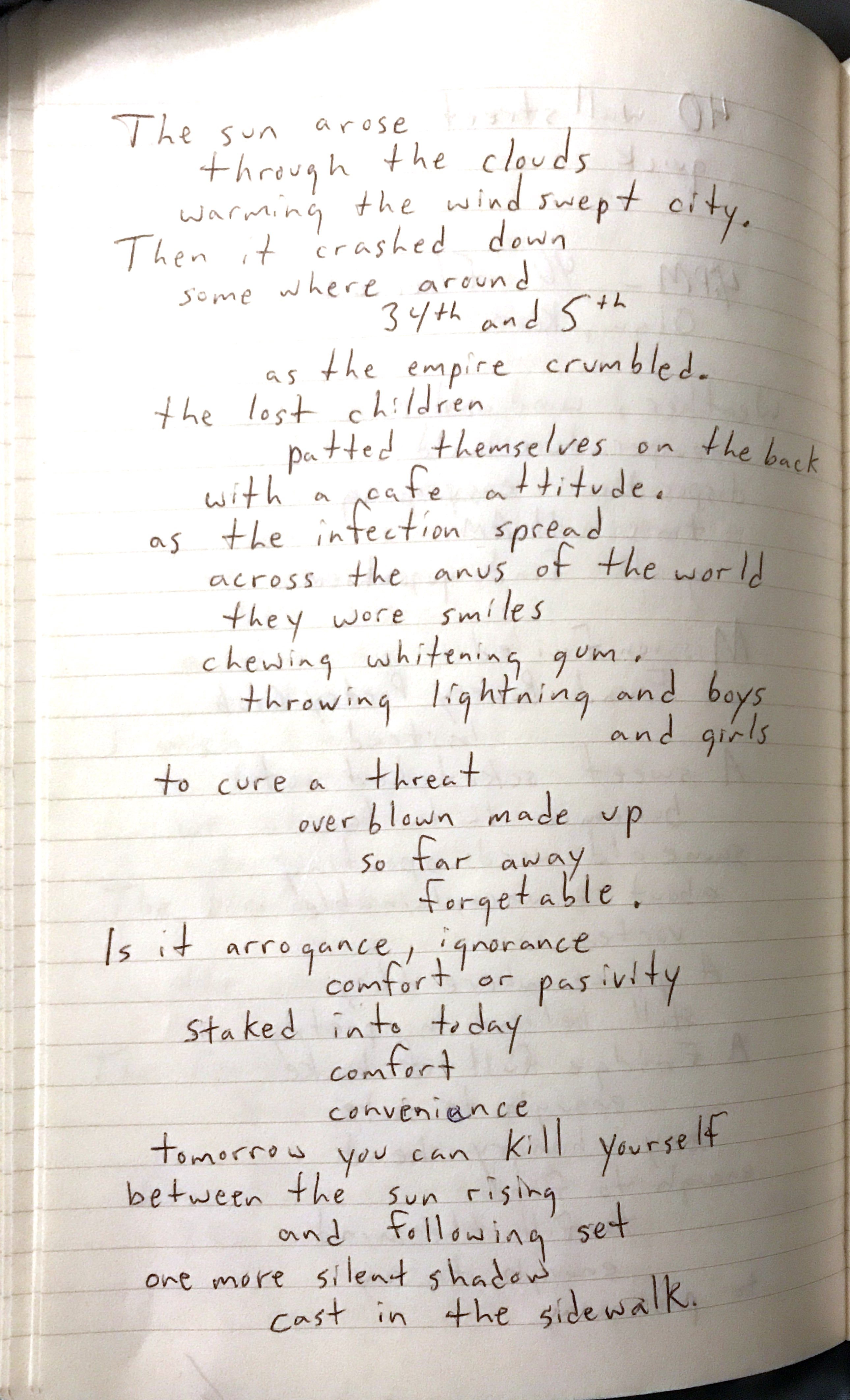 Between 2002 and 2007 I wrote a shit ton, almost daily, some days more than others. I thought I was out till I discovered this one buried in my box. After these I started bleedpoetry.com, and with technology my passion for writing diminished considerably.