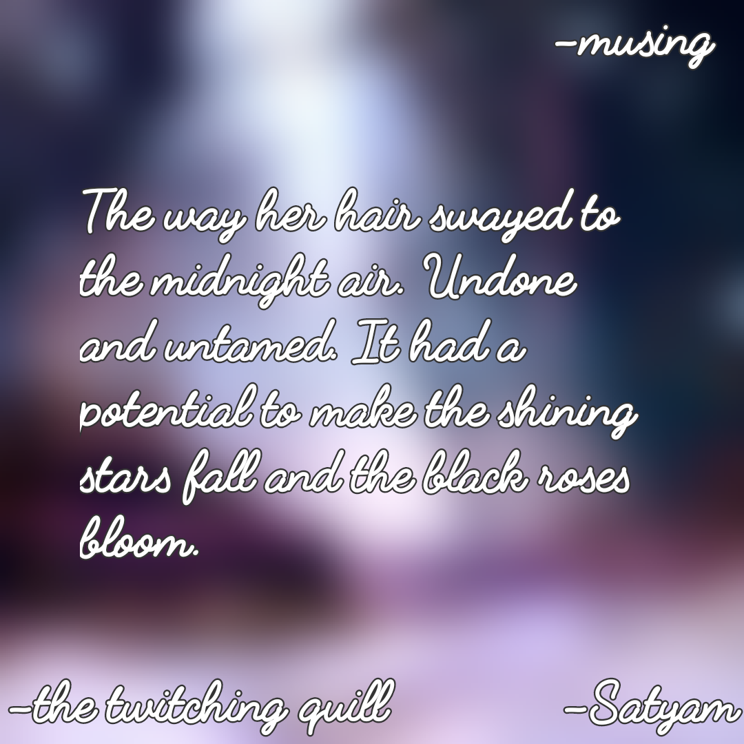 She walked on the terrace, under the shining moon with her gleaming eyes. Her hair was undone which slowly matched the rhythm of the breeze. A perfect sight to behold. She was carefree, not getting affected by things other than moon, stars and the vibe that had been created. She was a goddess to be worshipped, a piano ballad to be crooned and a beauty to behold. She was magic.