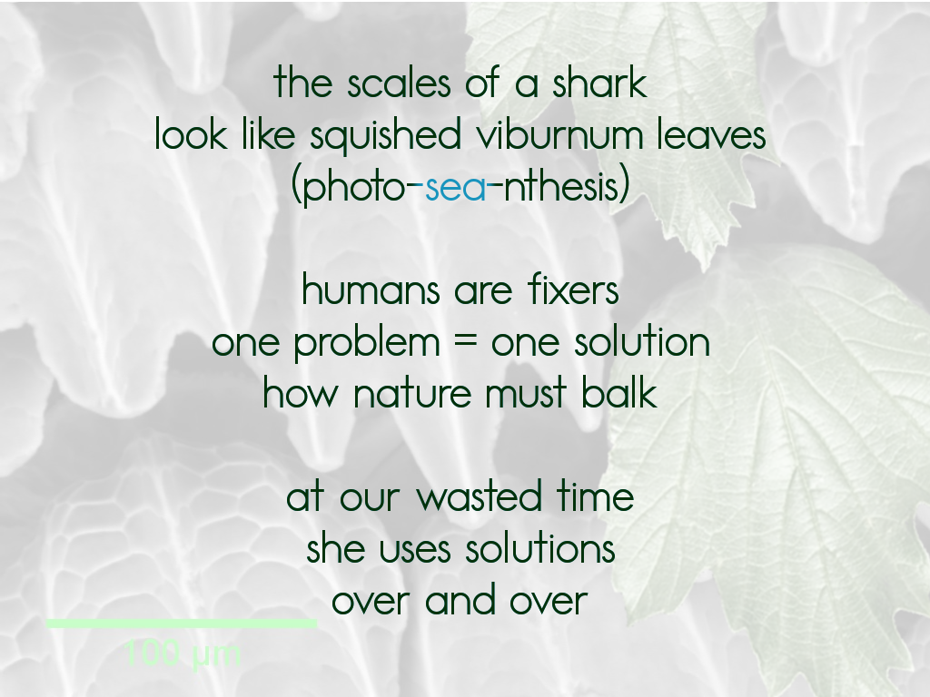 image sources: shark scales, viburnum leaves