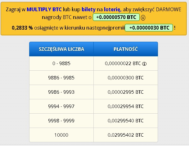Również kranik z dość długą tradycją działający kilka lat. Płaci co 15 minut, czyli co kwadrans musimy potwierdzić kod captcha i w ten sposób otrzymjemy darmowe satoshi. Ich liczba jest różna, więc czasem co 15 minut dostaniemy 15 satoshi, a czasem np tylko 6 sztuk. Mocną stroną tego kranika są prowizje od polecania w wysokosci 50%.
