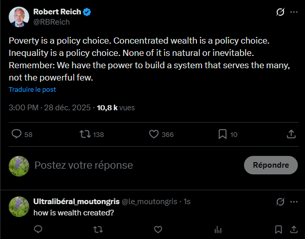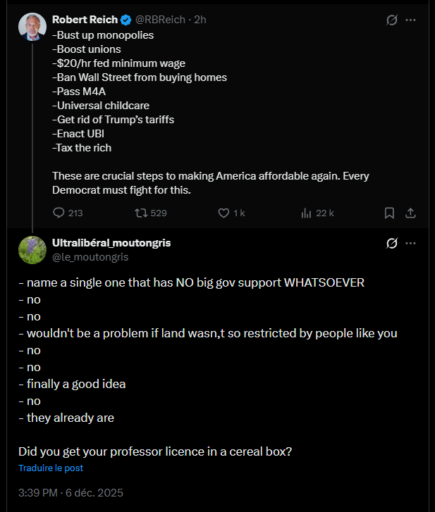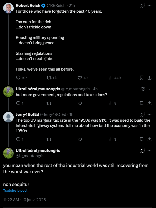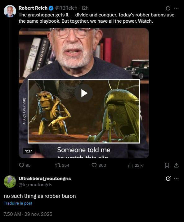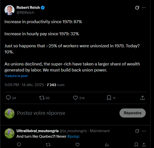 Is Reich aware that employee productivity increases mostly as a result of capital investments made by employers in thing such as computers, networks, software programs, things that connect to the worldwide web and allow employees to reach more customers and process data substantially faster than they could in 1979 and that the return on these capital investments is just normal profit, not a nefarious scheme to rob workers of their checks notes "surplus labor value." Or does he actually think workers are 87% faster and more efficient than they were 46 years ago? And is he aware that without this profit companies wouldn't be able to replace technological investments that become obsolete very quickly?
