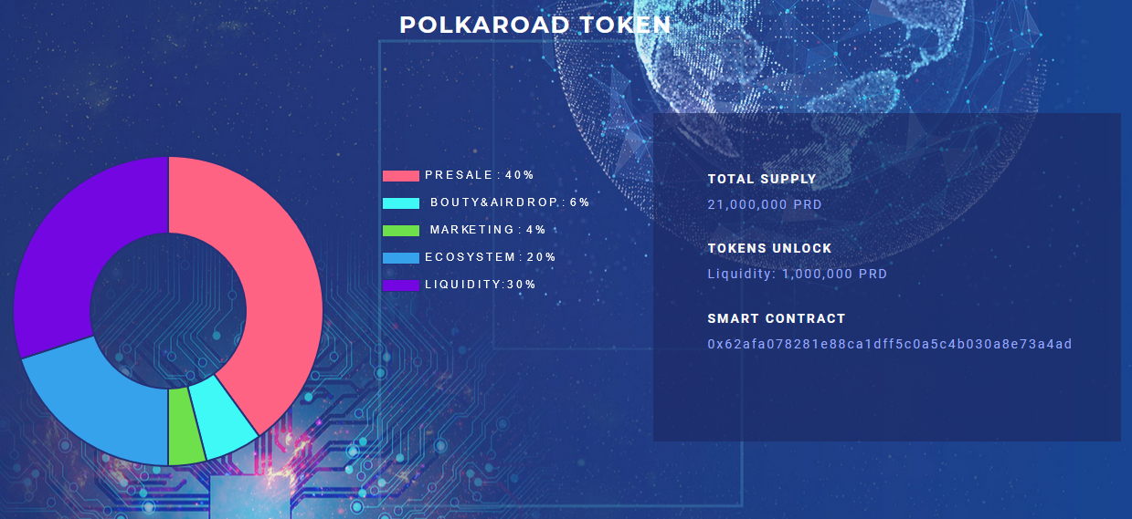 PRD is the native token of the PolkaRoad ecosystem. The main features of the PRD tokens are: