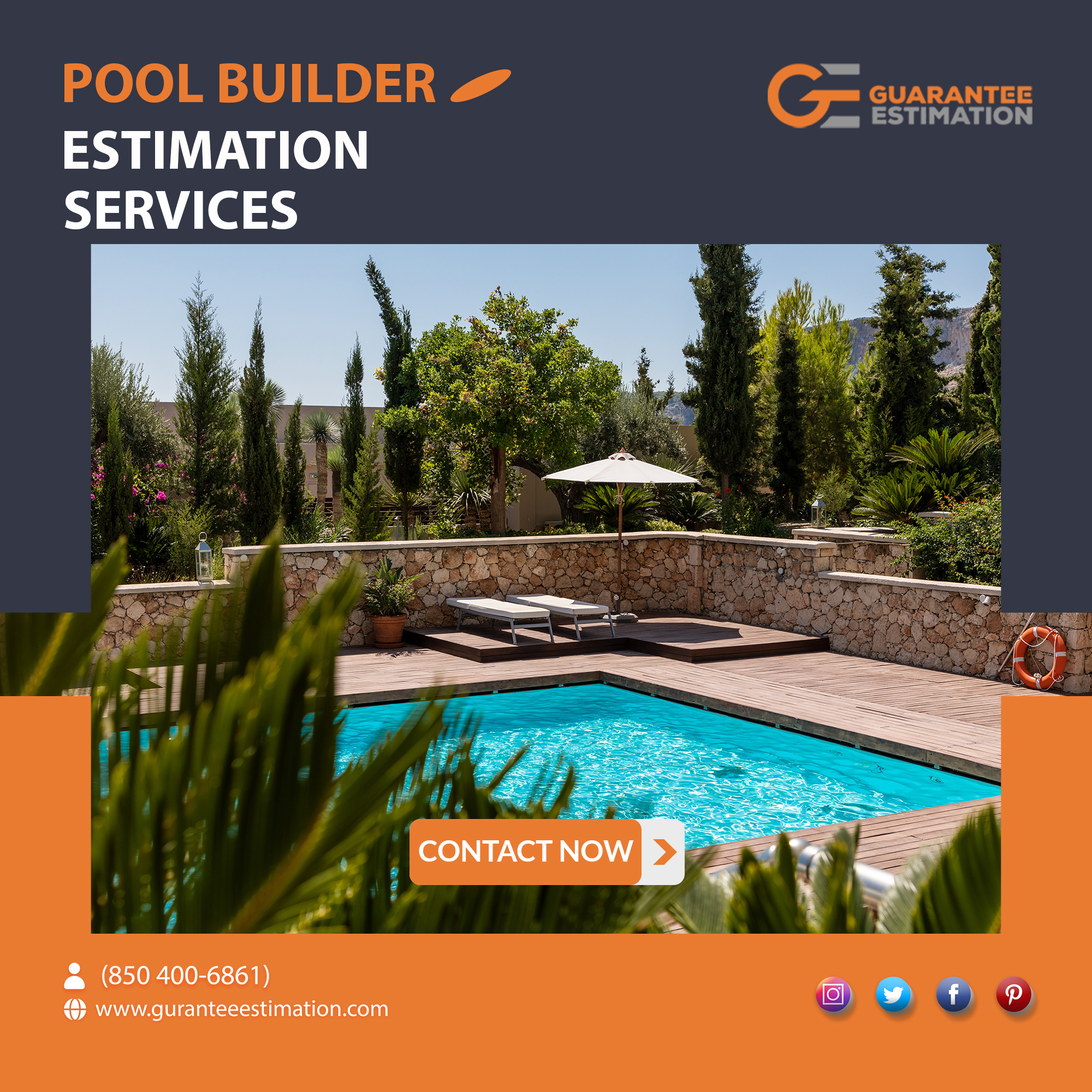 Pool Builder Estimation Servicesguranteee (25)in #poolestimate • 4 years ago This individual draws up a contract for each project which details the work that will be done and what materials and equipment will be used to complete it. www.guaranteeestimation.com #poolcostestimator #estimateforapool