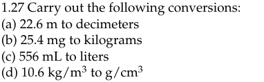 This exercise comes from Raymond Chang’s Chemistry (14th Edition), in Chapter 1: Measurement and the Properties of Matter. The focus here is on unit conversions, a foundational skill in chemistry that ensures consistency and clarity when working with experimental data.