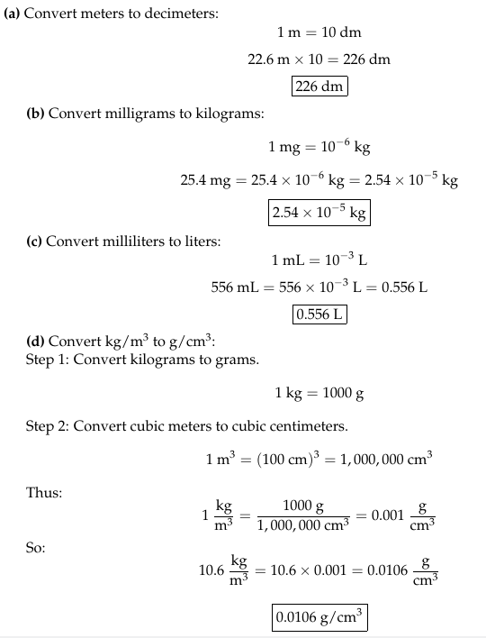 These problems reinforce the use of the metric system and conversion factors, which are critical in scientific communication. Whether you’re working with lengths, masses, or densities, mastering unit conversions is essential.