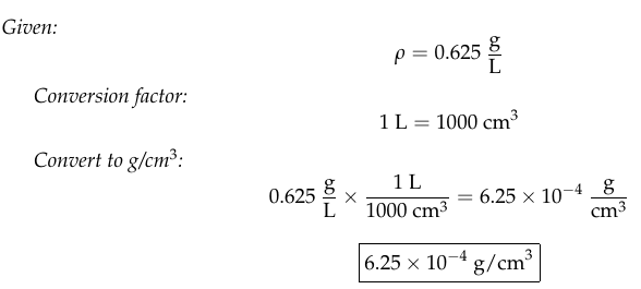 The density of ammonia gas under certain conditions is 0.625 g/L.