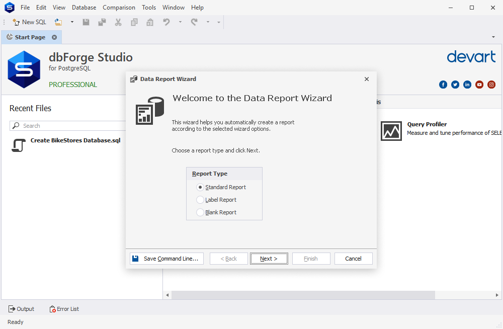 Mehr erfahren - https://www.devart.com/de/dbforge/postgresql/studio/data-reporting.html