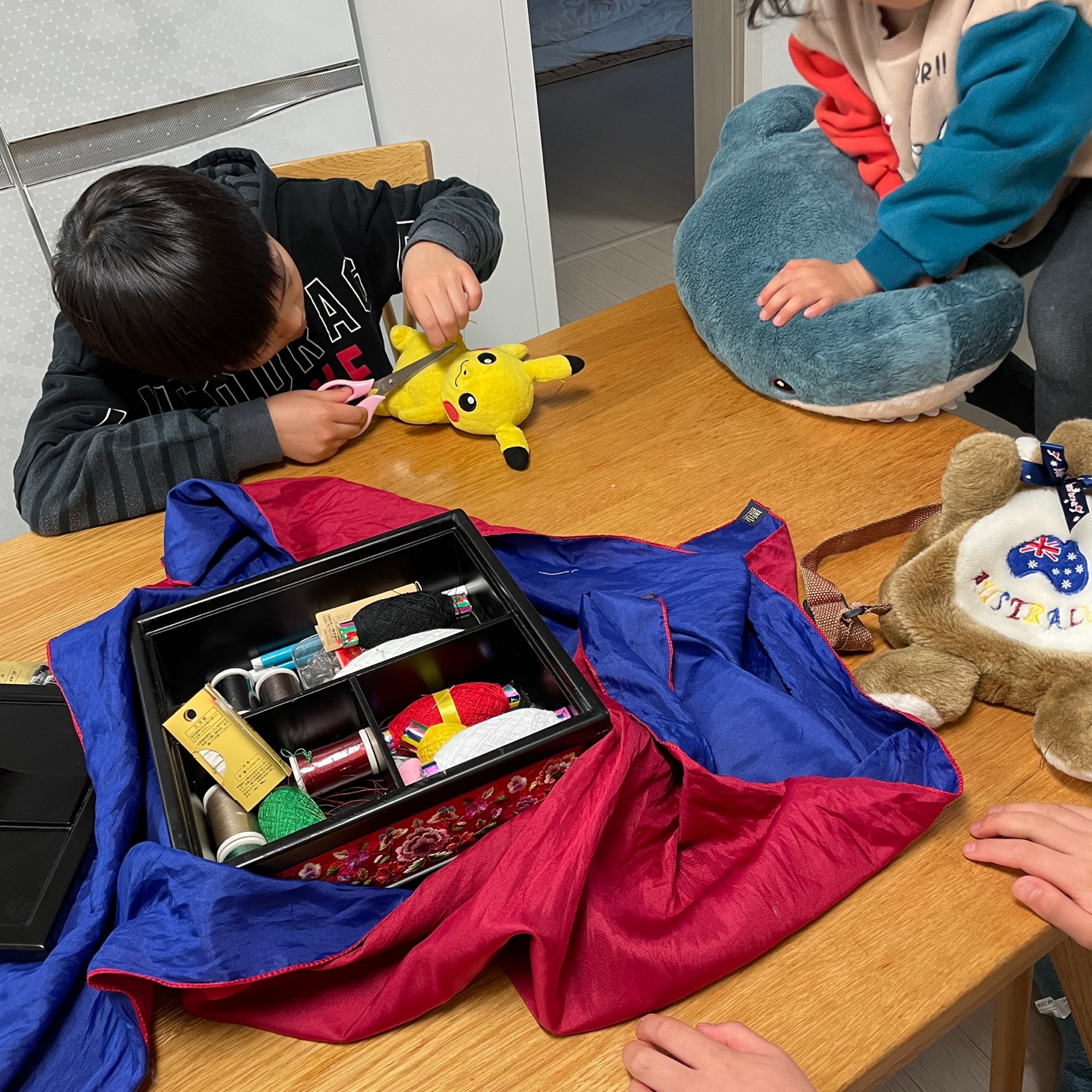 오늘 내 장갑을 꿰매는데 셋째가 자신의 인형도 꿰매 달라고 했다. 피카츄 인형은 코 윗부분이 구멍 났고 멍멍이 인형은 귀가 떨어져 있었다. 인형에 맡는 노란색과 흰색 실을 꺼내 작은 바늘귀에 쏘옥 집어 넣을 때부터 집중하기 시작했다. 아이 부탁이니 만큼 한 땀 한 땀 정성 들여 꿰맸다. 혹여나 뾰족한 바늘에 손가락을 찔릴까 아이 눈은 연신 내 손짓을 따라간다. 이윽고 바느질을 멈추자 아이는 환호했다. 겨우 바느질 하나에도 깊이 감탄하고 즐거워하는 아이들을 보면서 내가 더 뿌듯한 마음이 들었다.
