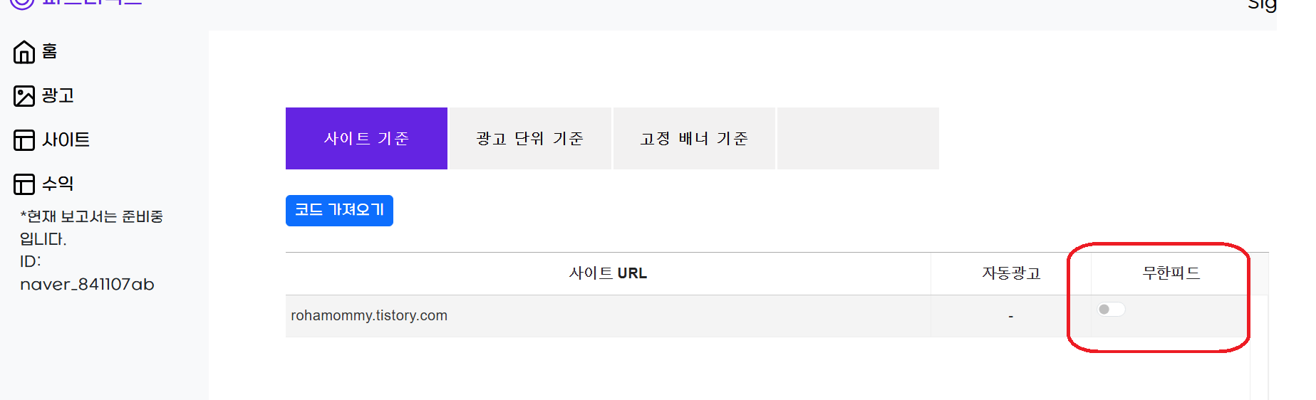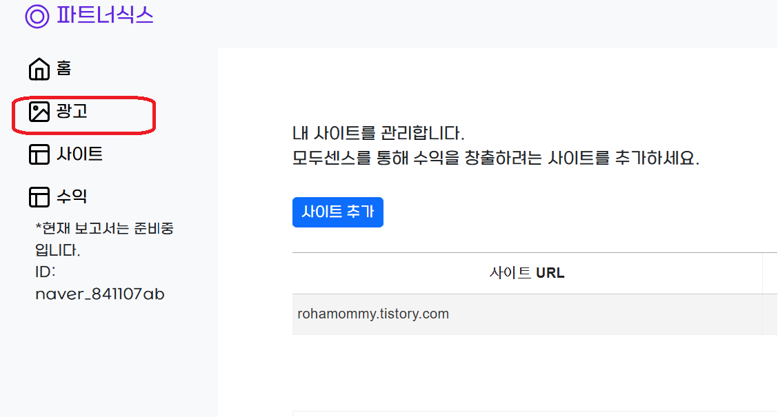 그럼 이제 좌측화면에서 광고를 눌러줍니다.