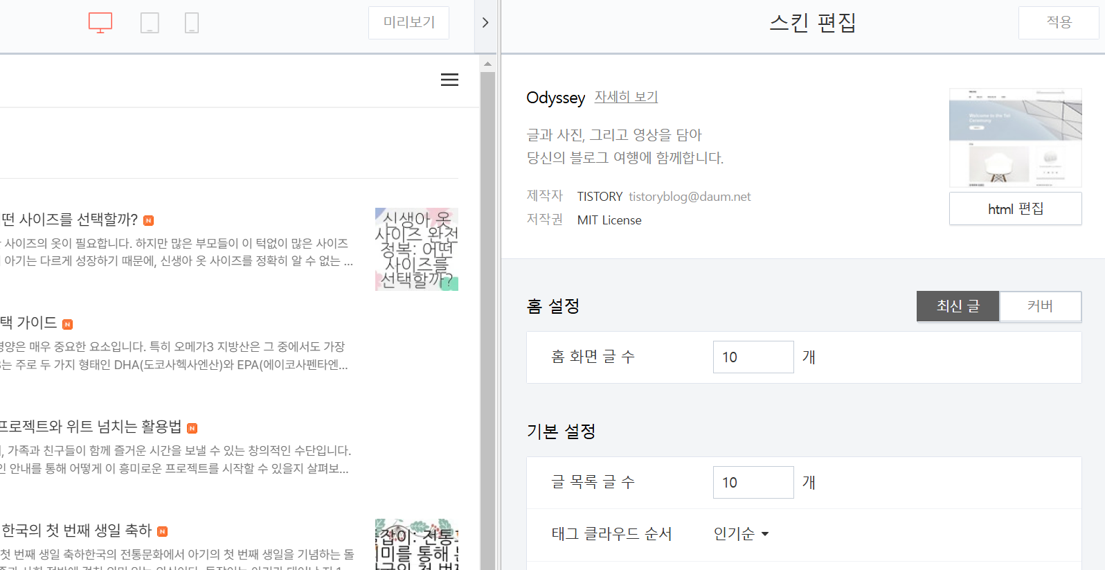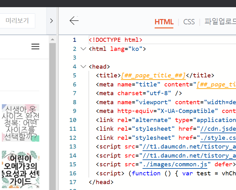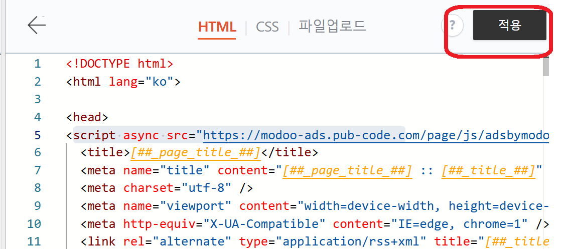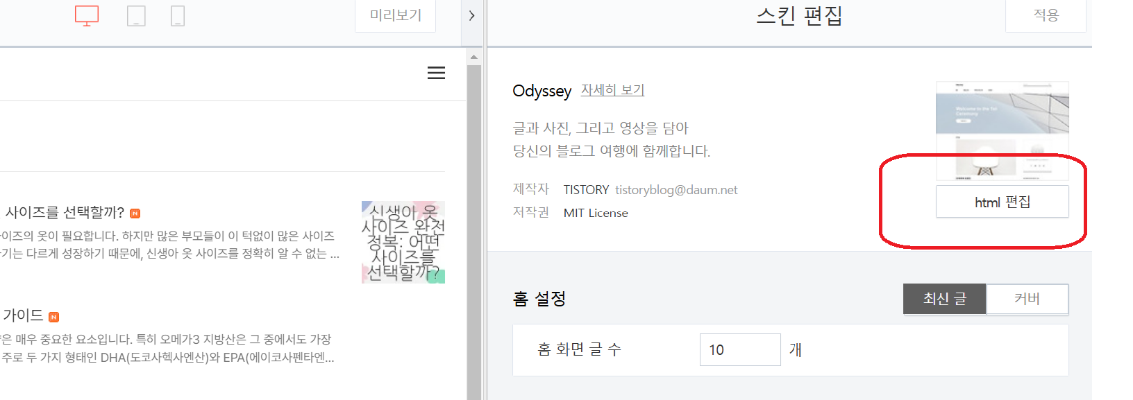 여기서 html편집 을 눌러주세요