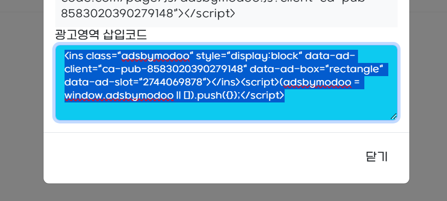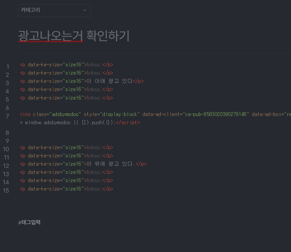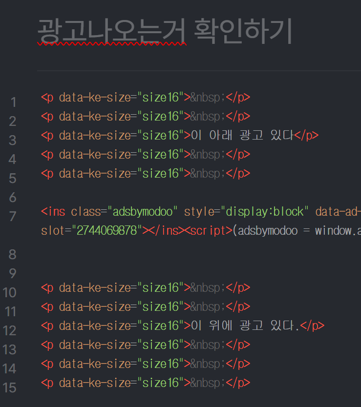 아까 광고영역 삽입코드 이것만 복사하세요