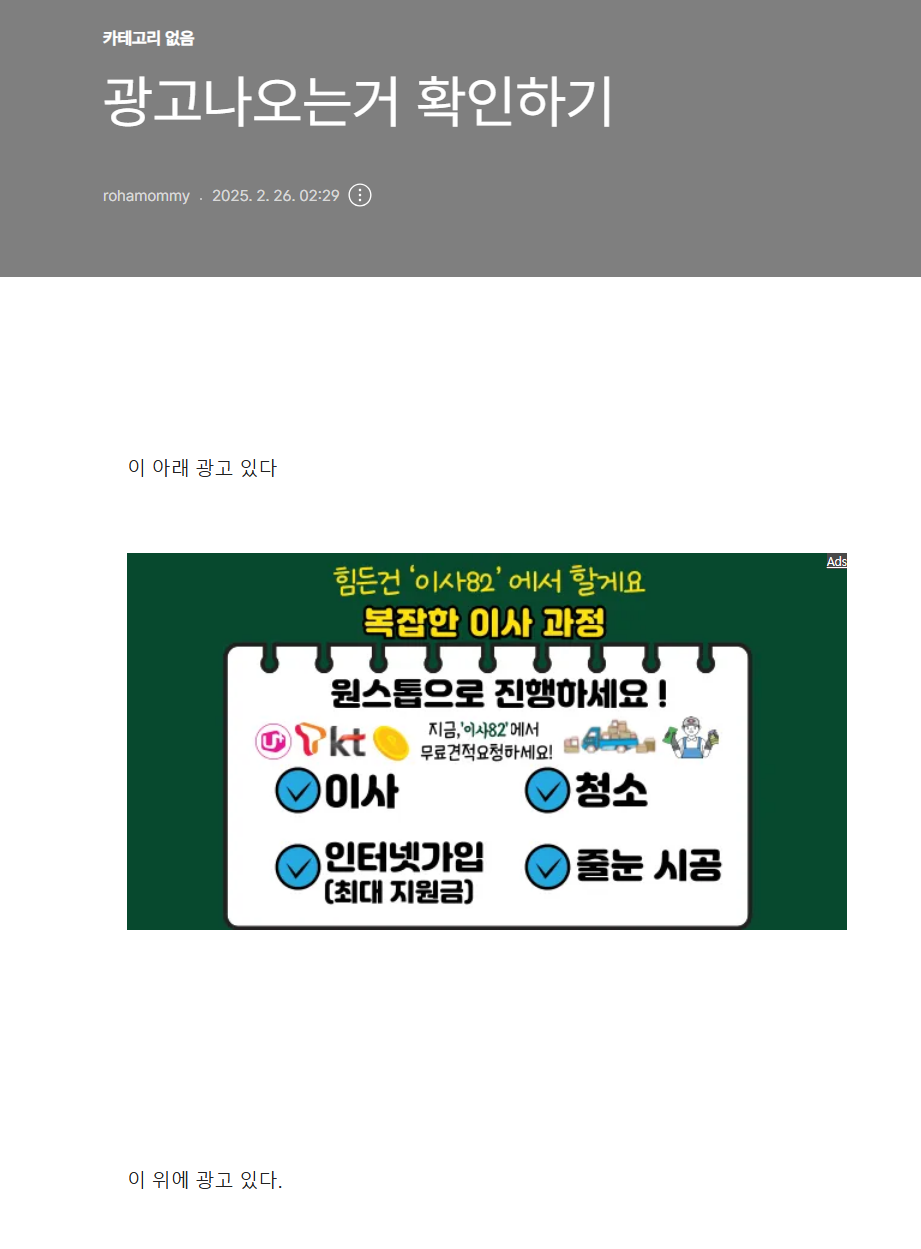 이 글로 이동하시면 광고가 나오는지 확인하실수 있습니다.