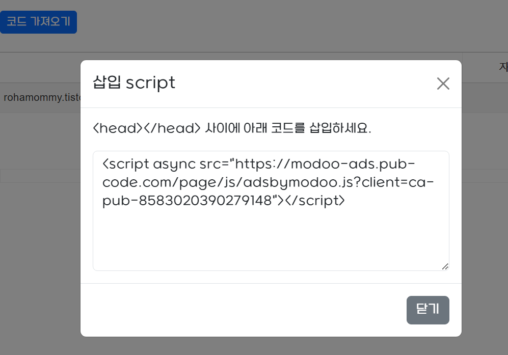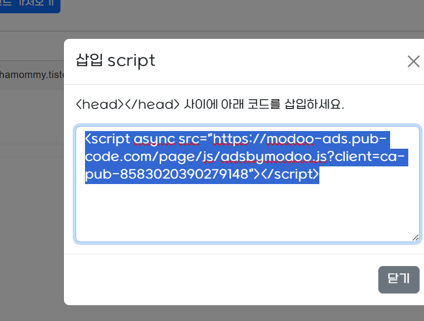 스크립트 삽입하라는 창이 하나 뜹니다.