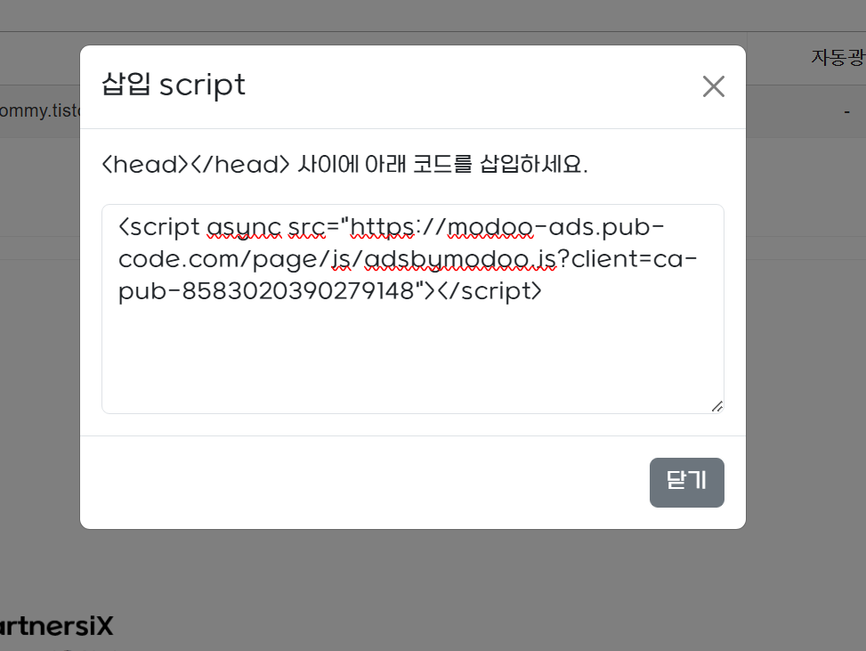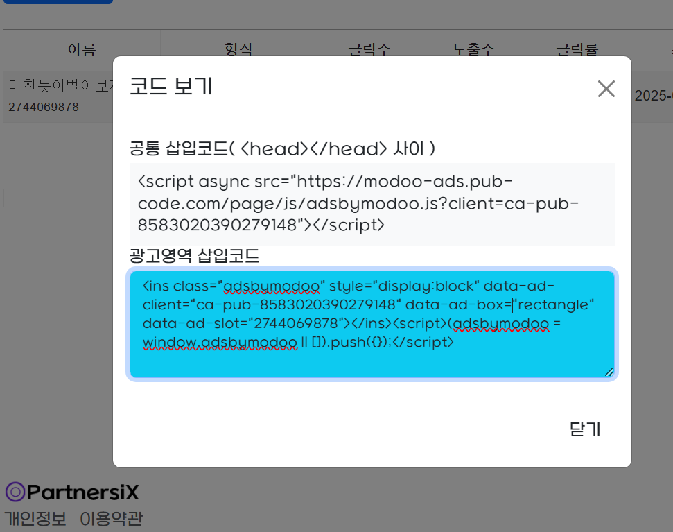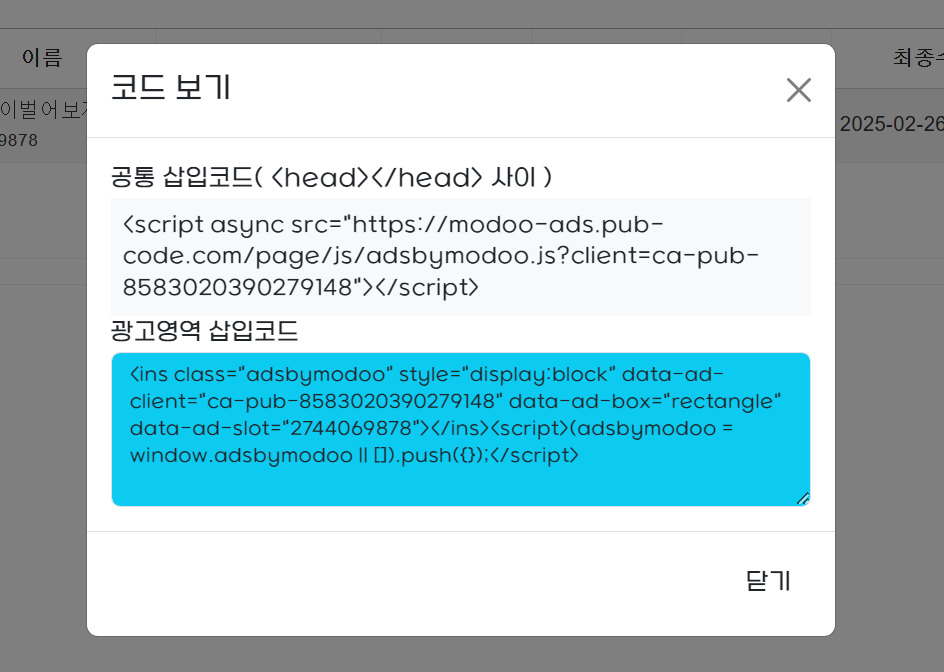 광고영역삽입코드만 복사하면됩니다.