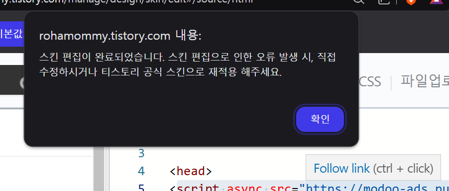 자 이제 다시 티스토리로 넘어가서 직접 테스트해보죠